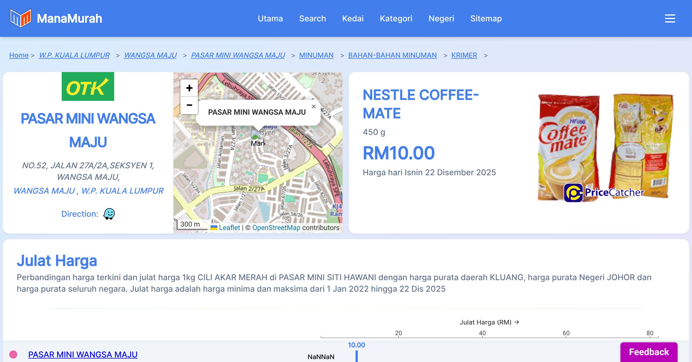 Tiada maklumat harga NESTLE COFFEE-MATE di WANGSA MAJU pada minggu ke-52 tahun 2025 dari 22 Disember 2025
