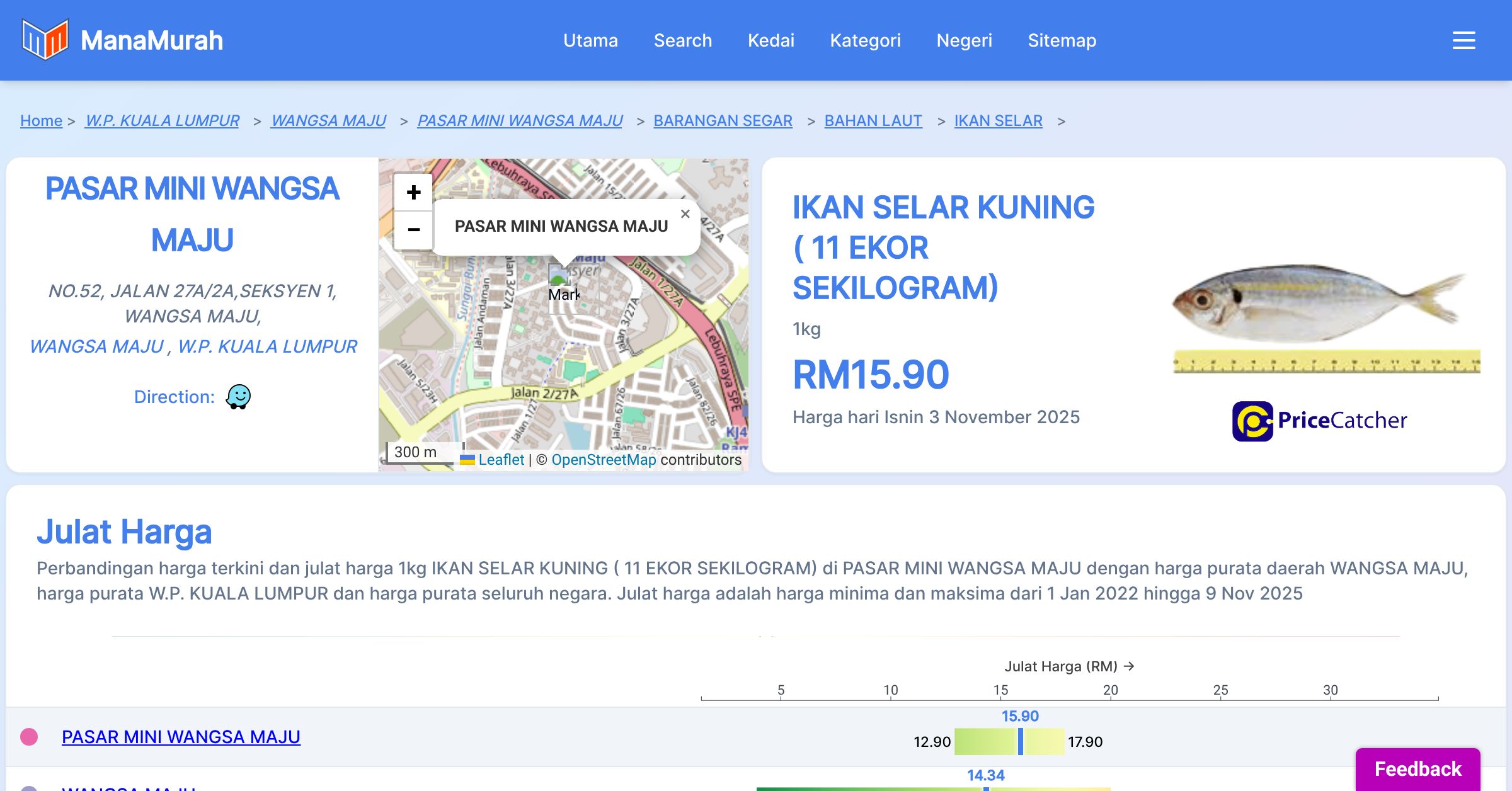 Senarai harga barang di PASAR MINI WANGSA MAJU