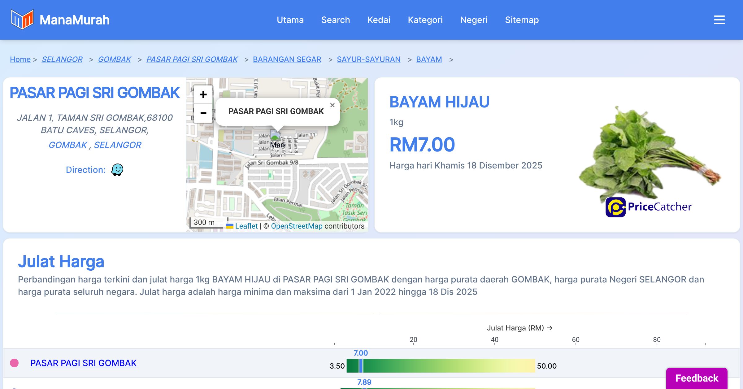 Senarai harga barang di PASAR PAGI SRI GOMBAK