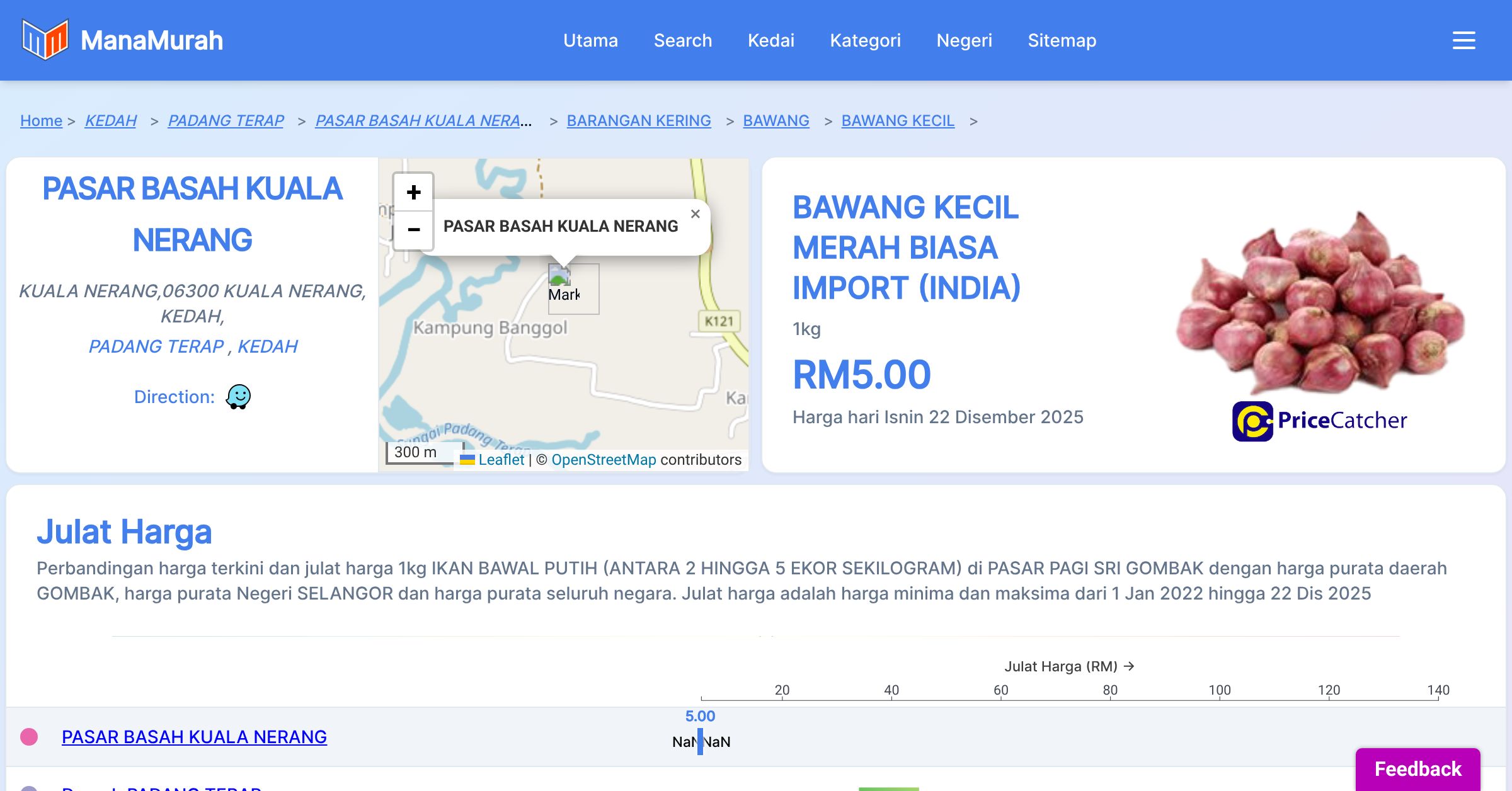 Senarai harga barang di PASAR BASAH KUALA NERANG