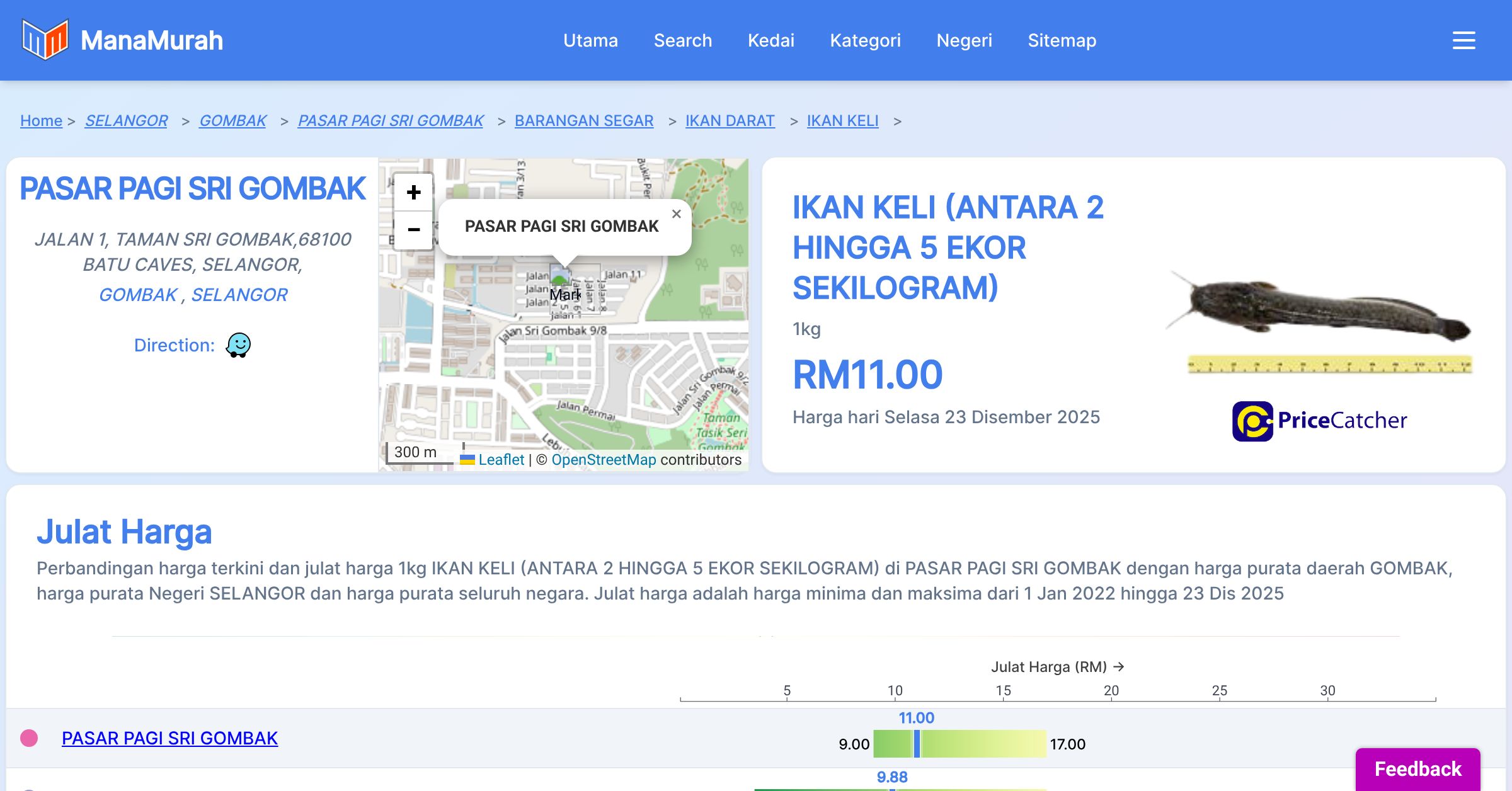 Senarai harga barang di PASAR PAGI SRI GOMBAK