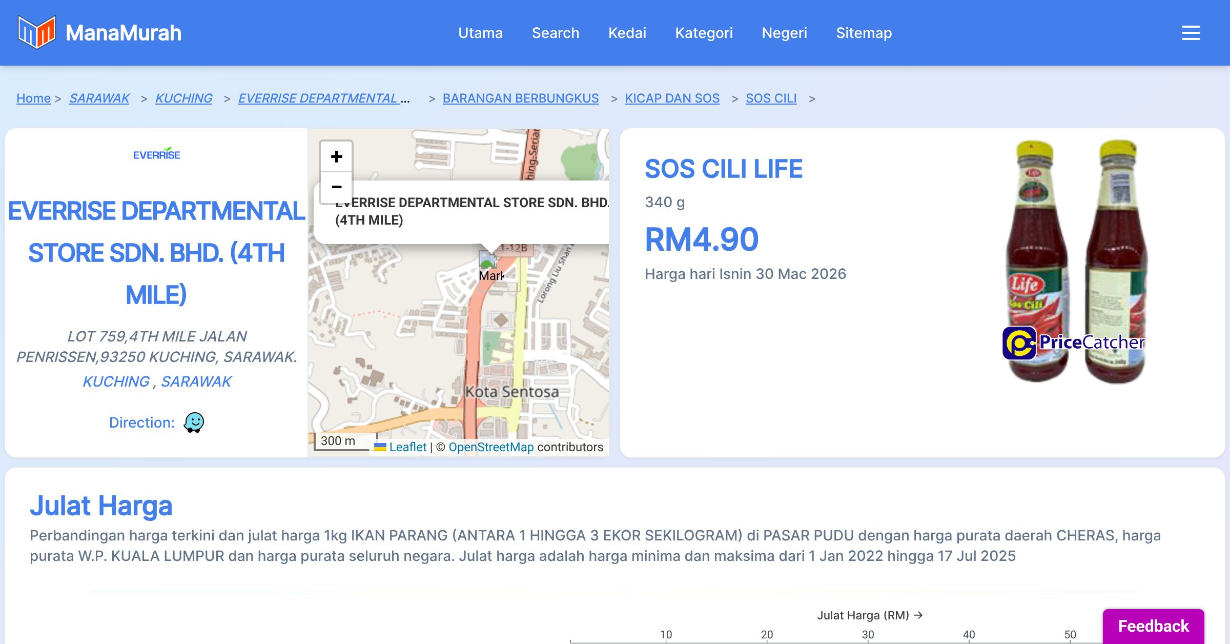 Senarai harga barang di PASAR BESAR SUNGAI ARA