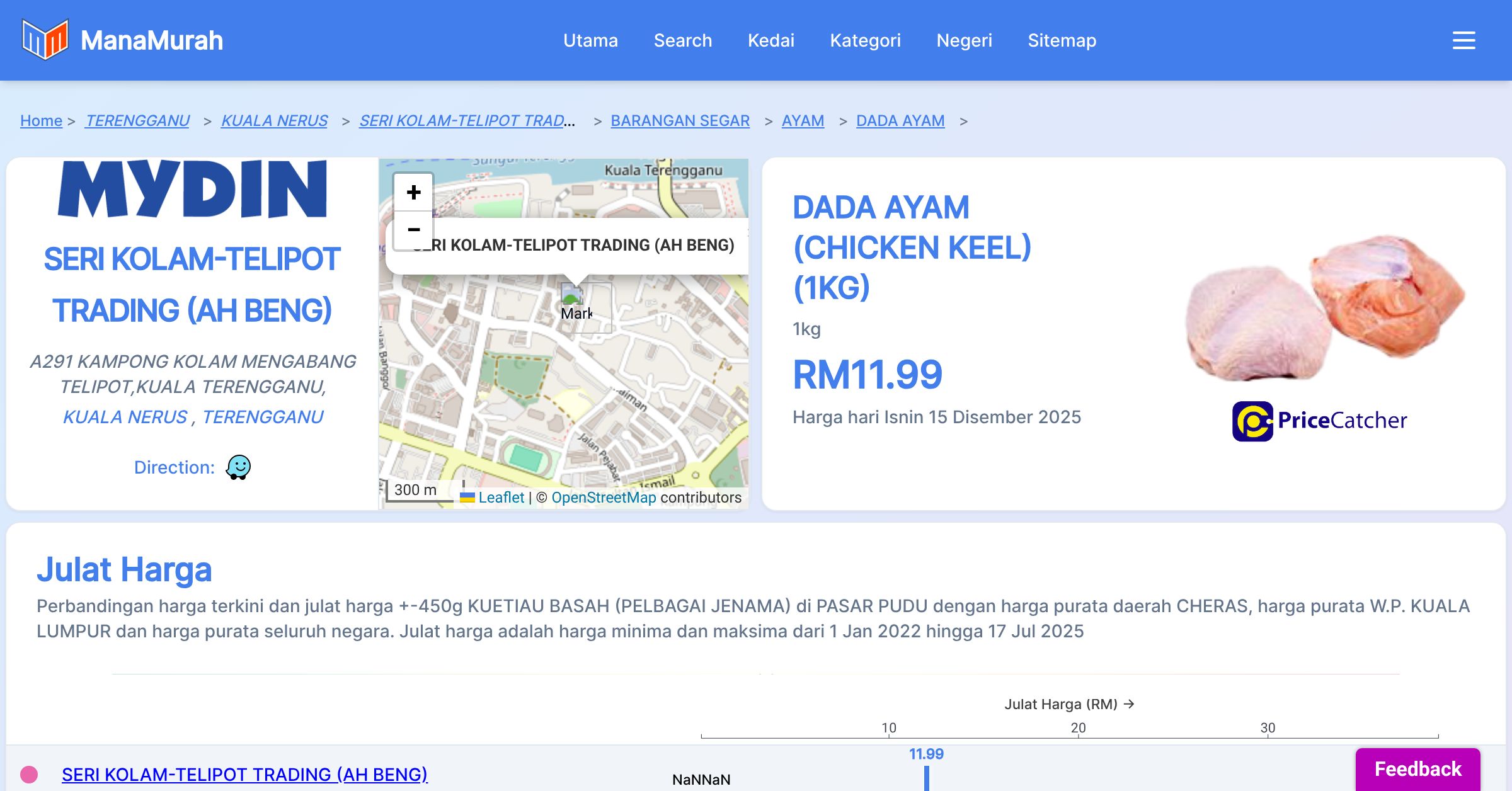 Tiada maklumat harga DADA AYAM (CHICKEN KEEL) (1KG) di Daerah KUALA NERUS pada minggu ke-51 tahun 2025 dari 15 hingga 21 Disember