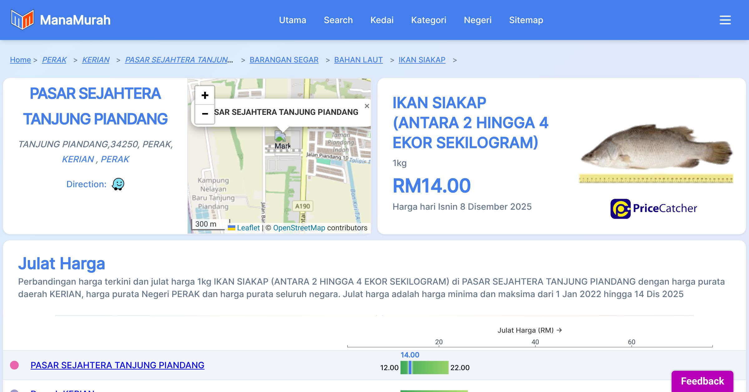 Senarai harga barang di PASAR SEJAHTERA TANJUNG PIANDANG