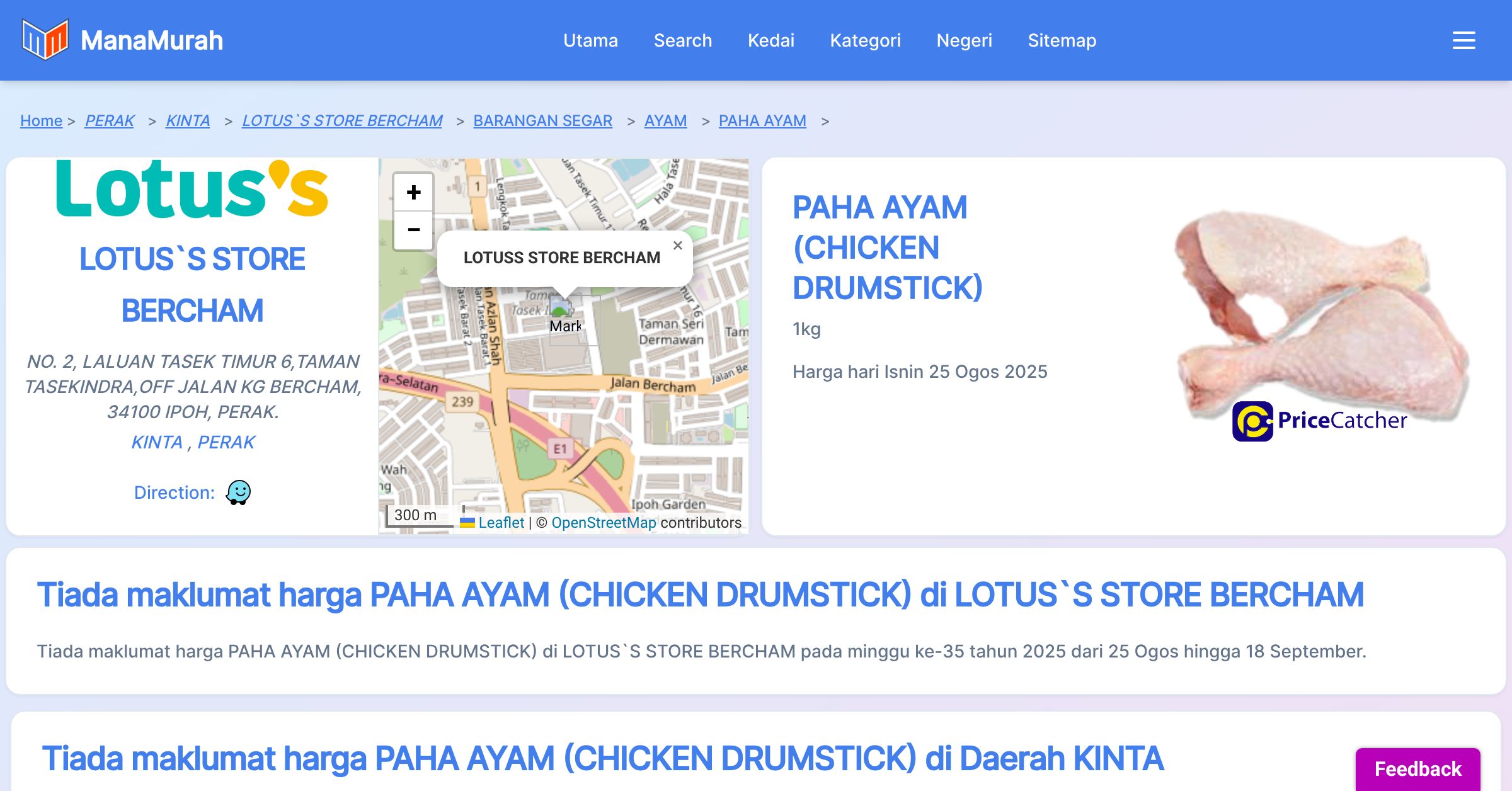 Tiada maklumat harga SERBUK KARI IKAN BABAS di Daerah LAHAD DATU pada minggu ke-13 tahun 2026 dari 23 Mac hingga 3 April