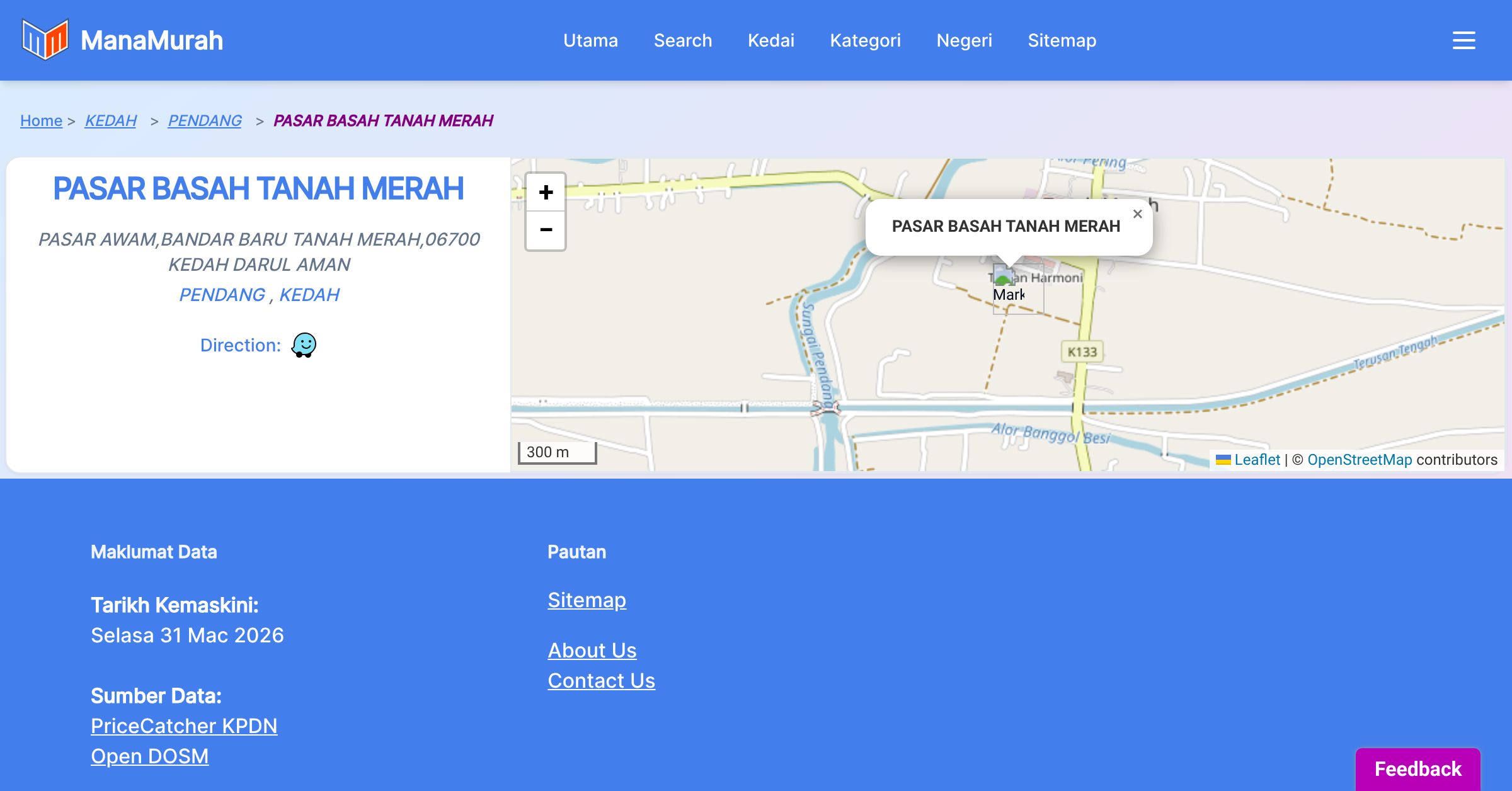 Prices are aggregated from public retail sources (including PriceCatcher KPDN and Open DOSM) and may not reflect real-time in-store prices. ManaMurah.com, DOSM, and KPDN assume no responsibility for any inaccuracies or omissions.