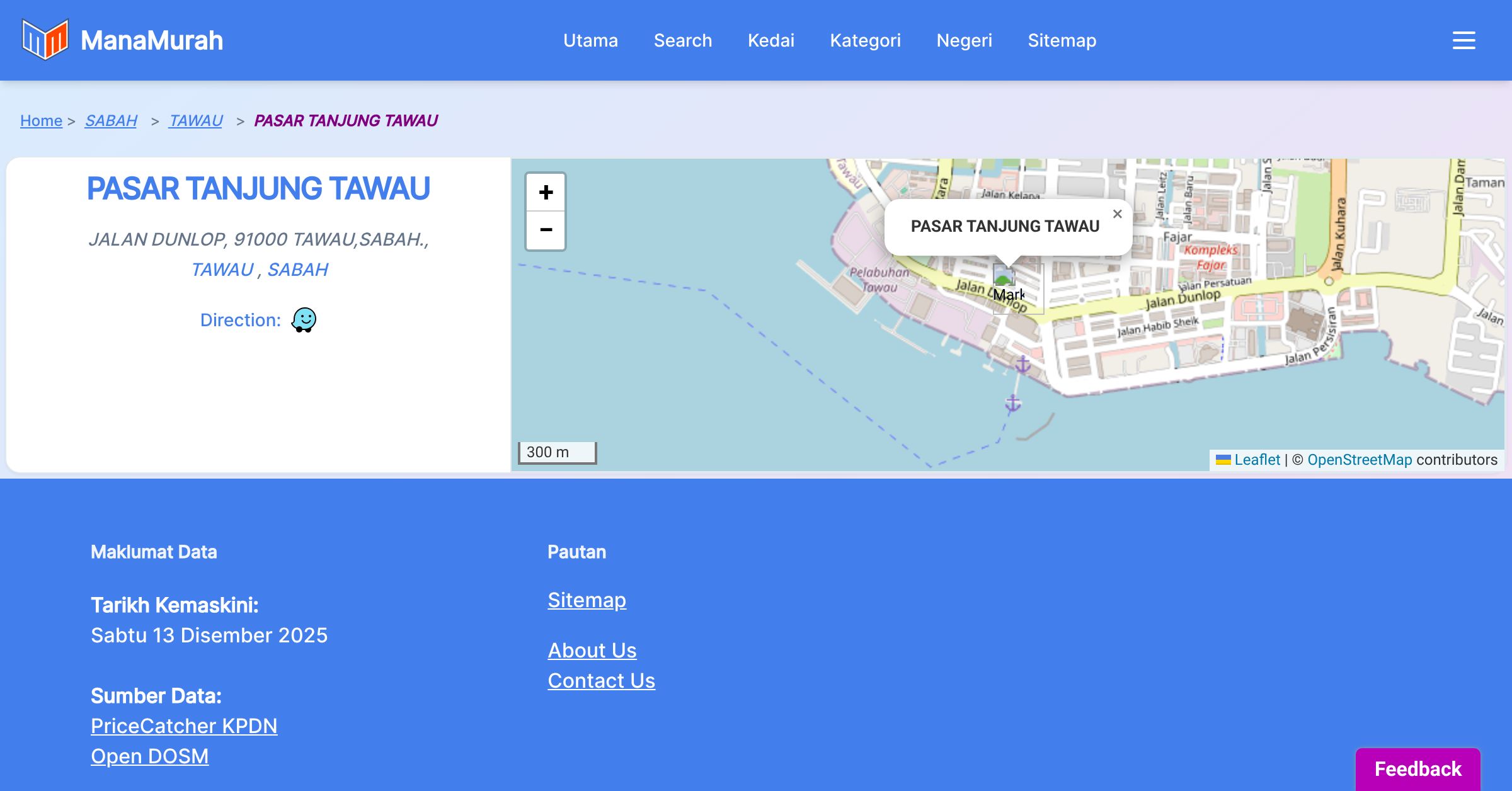 Maklumat harga adalah semasa pemantauan dibuat dan untuk tujuan sebagai rujukan sahaja. Pihak ManaMurah.com, DOSM, Portal PriceCatcher dan KPDN tidak bertanggungjawab atas sebarang kesilapan, kekurangan, ketidaktepatan, atau dari sebarang implikasi dari maklumat yang dipaparkan.