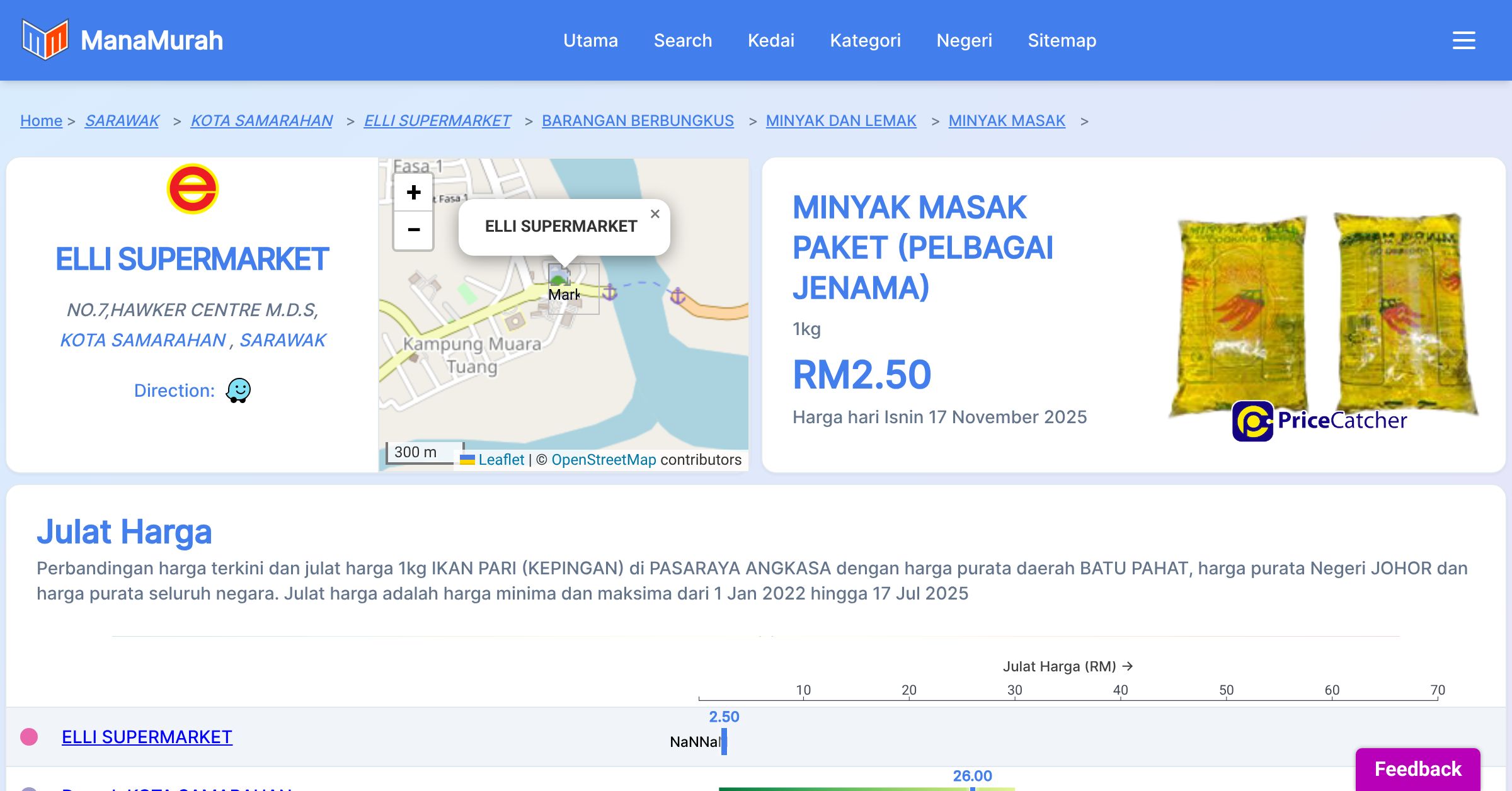 Perbandingan harga terkini dan julat harga 1kg IKAN PARI (KEPINGAN) di PASARAYA ANGKASA dengan harga purata daerah BATU PAHAT, harga purata Negeri JOHOR dan harga purata seluruh negara. Julat harga adalah harga minima dan maksima dari 1 Jan 2022 hingga 17 Jul 2025