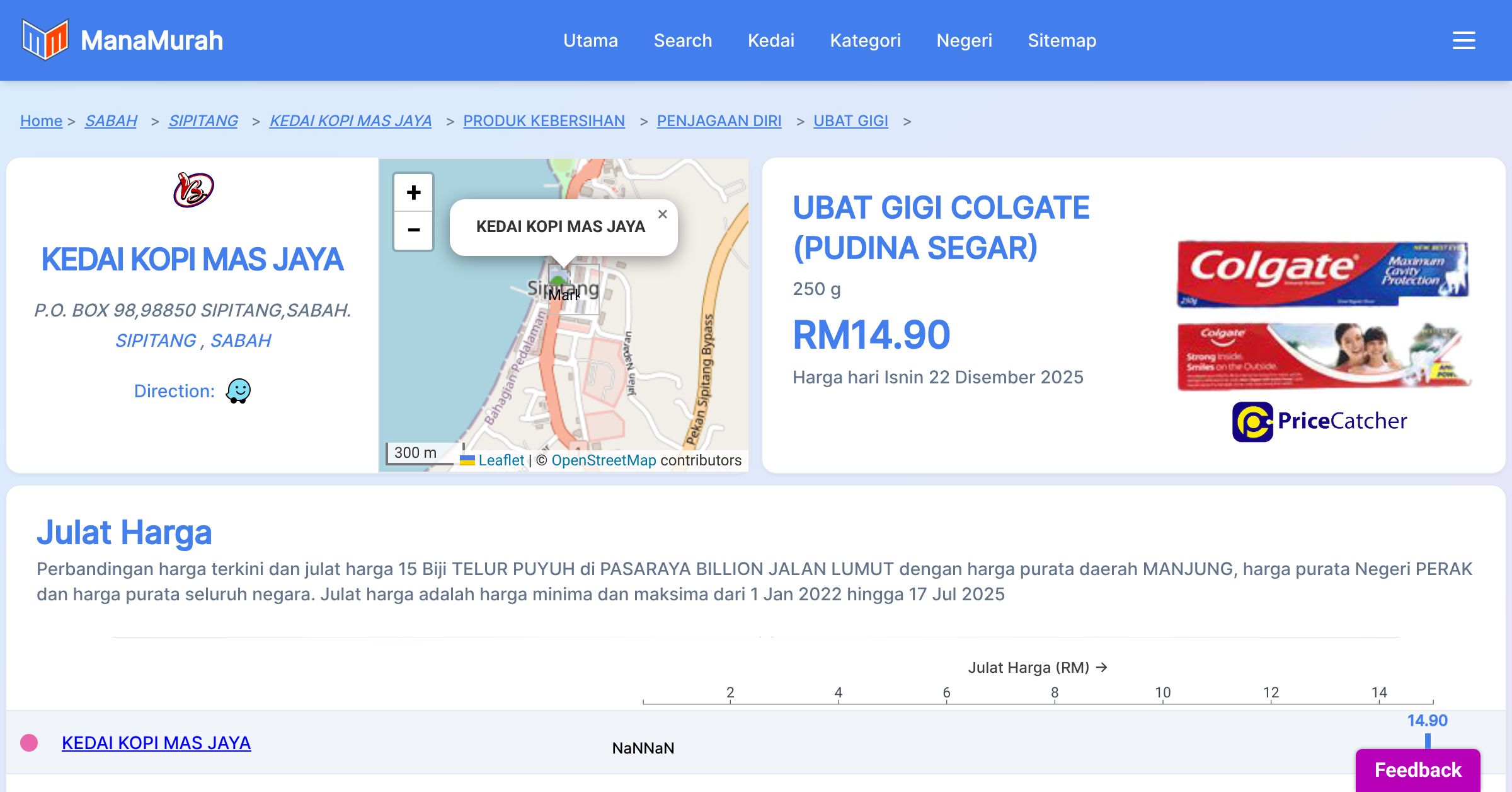 Senarai harga barang di KEDAI KOPI MAS JAYA pada minggu ke-52 tahun 2025 dari 22 hingga 27 Disember