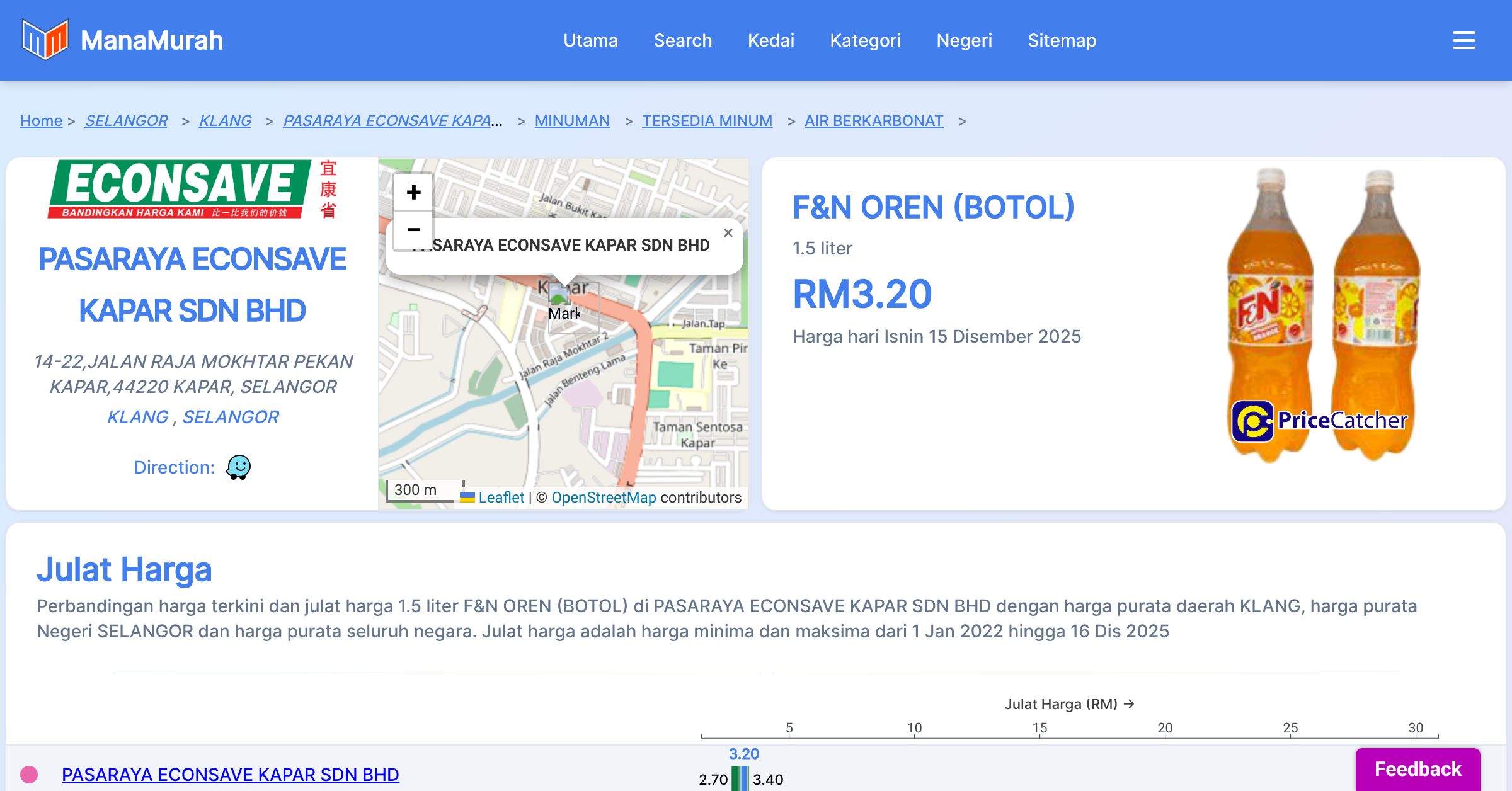 Senarai harga barang di PASARAYA ECONSAVE KAPAR SDN BHD