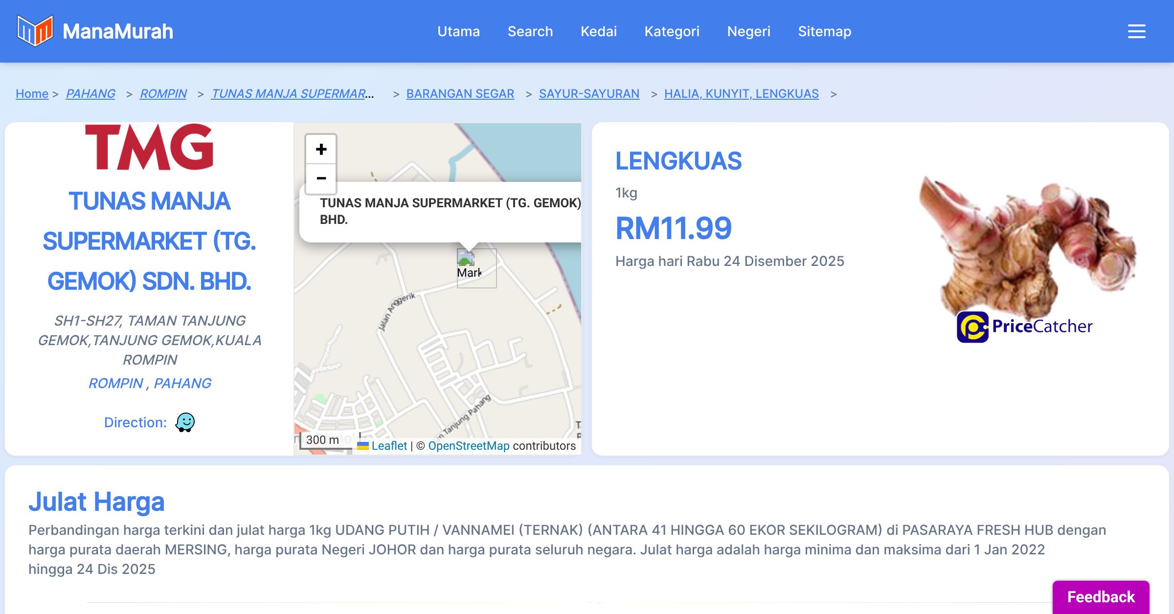 Senarai harga barang di TUNAS MANJA SUPERMARKET (TG. GEMOK) SDN. BHD.