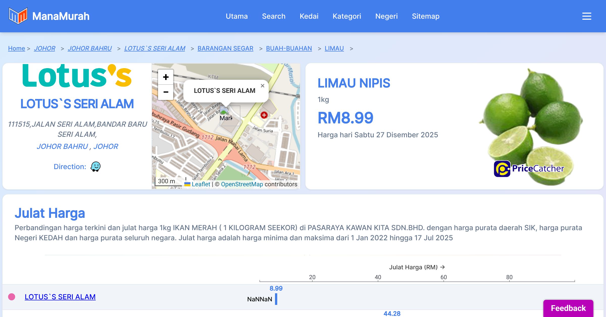 Tiada maklumat harga LIMAU NIPIS di Daerah JOHOR BAHRU