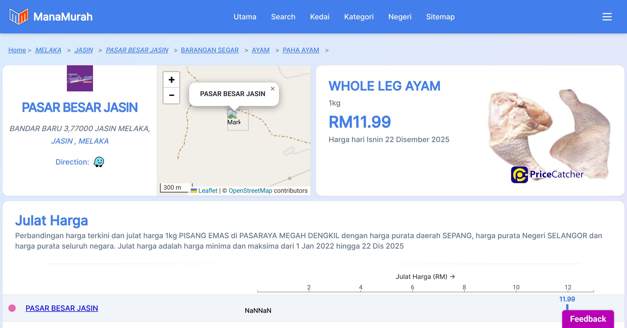 Tiada maklumat harga WHOLE LEG AYAM di Daerah JASIN pada minggu ke-52 tahun 2025 dari 22 hingga 24 Disember