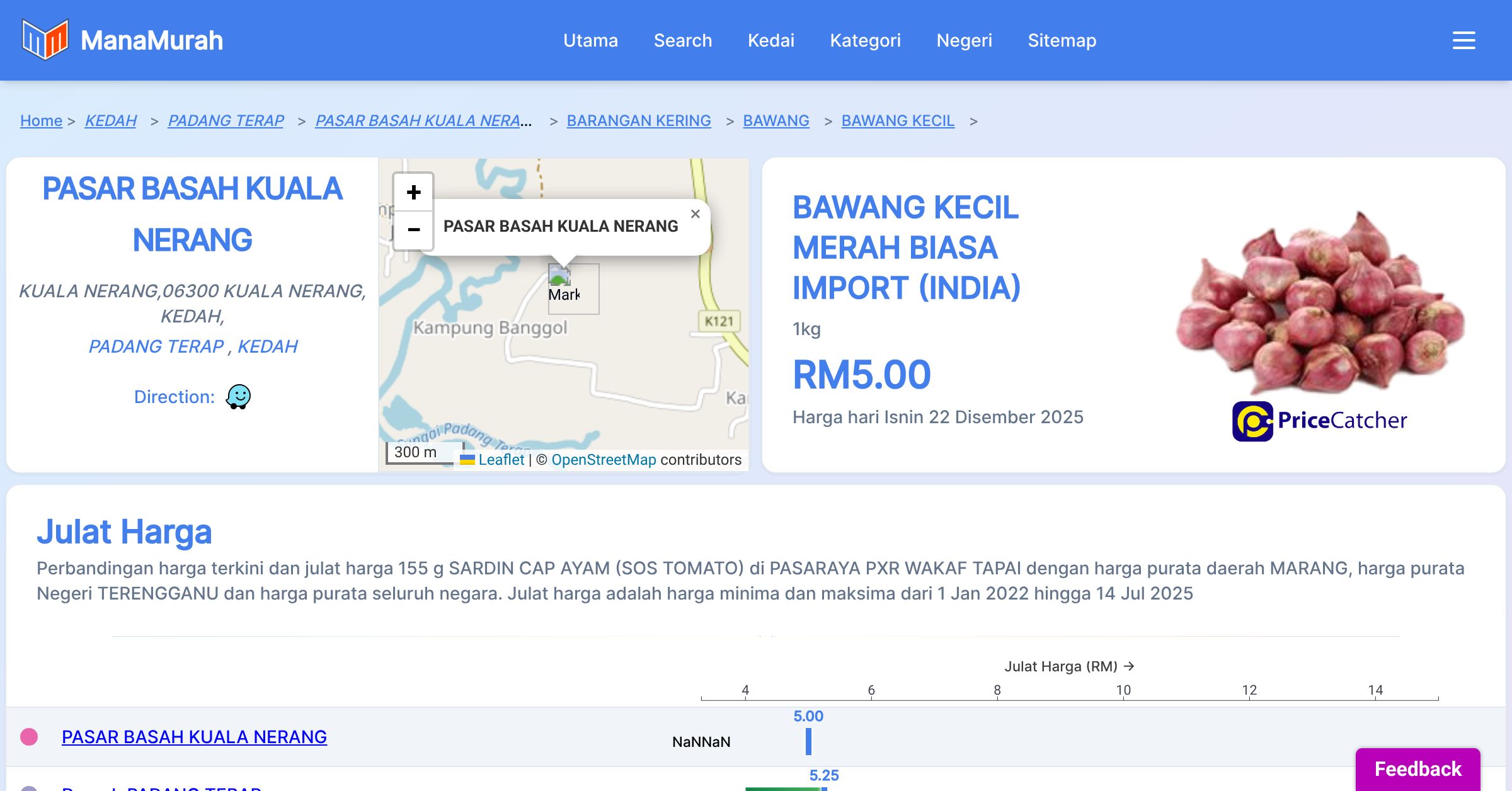 Senarai harga barang di PASAR BASAH KUALA NERANG