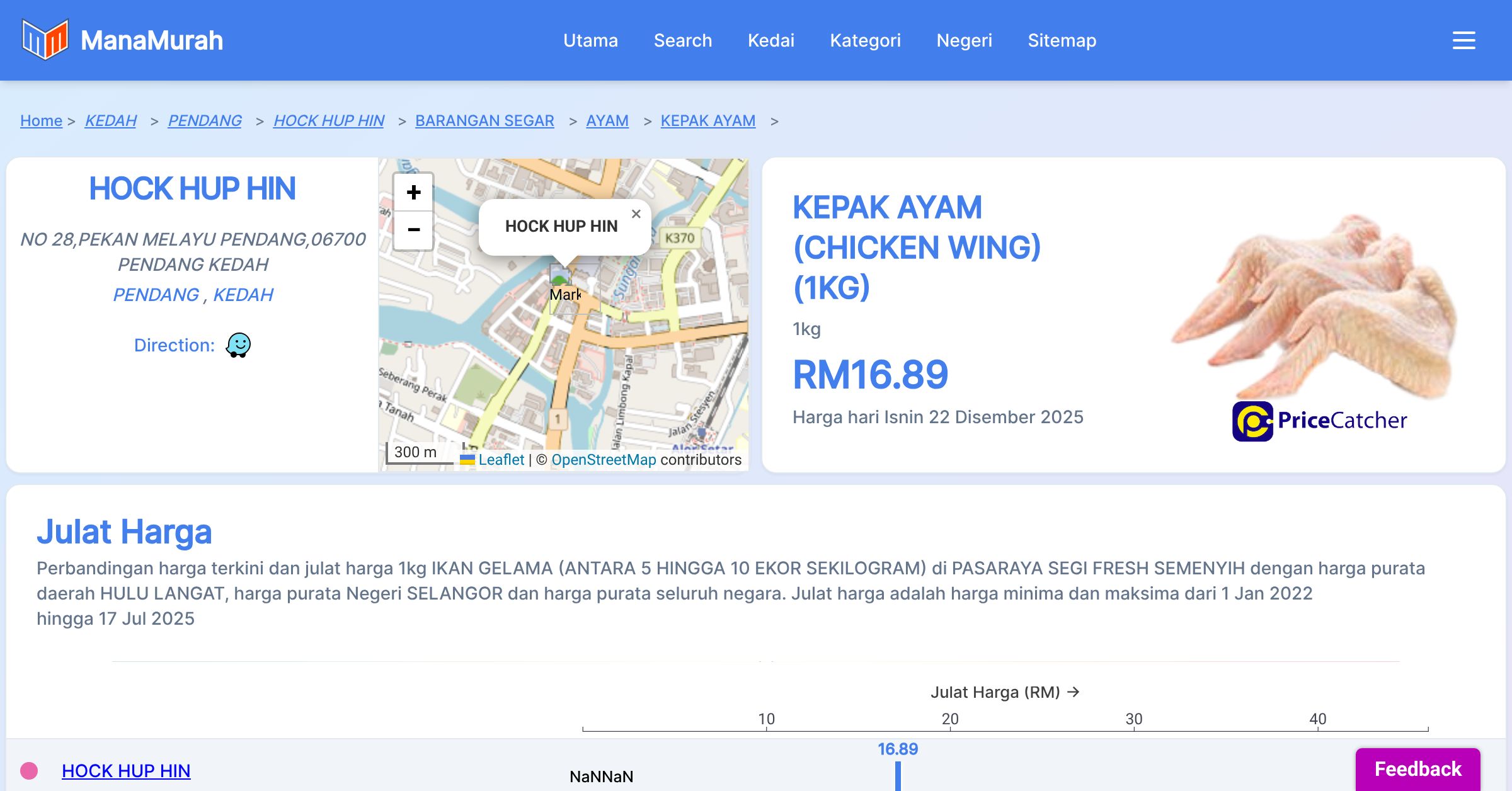 Tiada maklumat harga KEPAK AYAM (CHICKEN WING) (1KG) di Daerah PENDANG