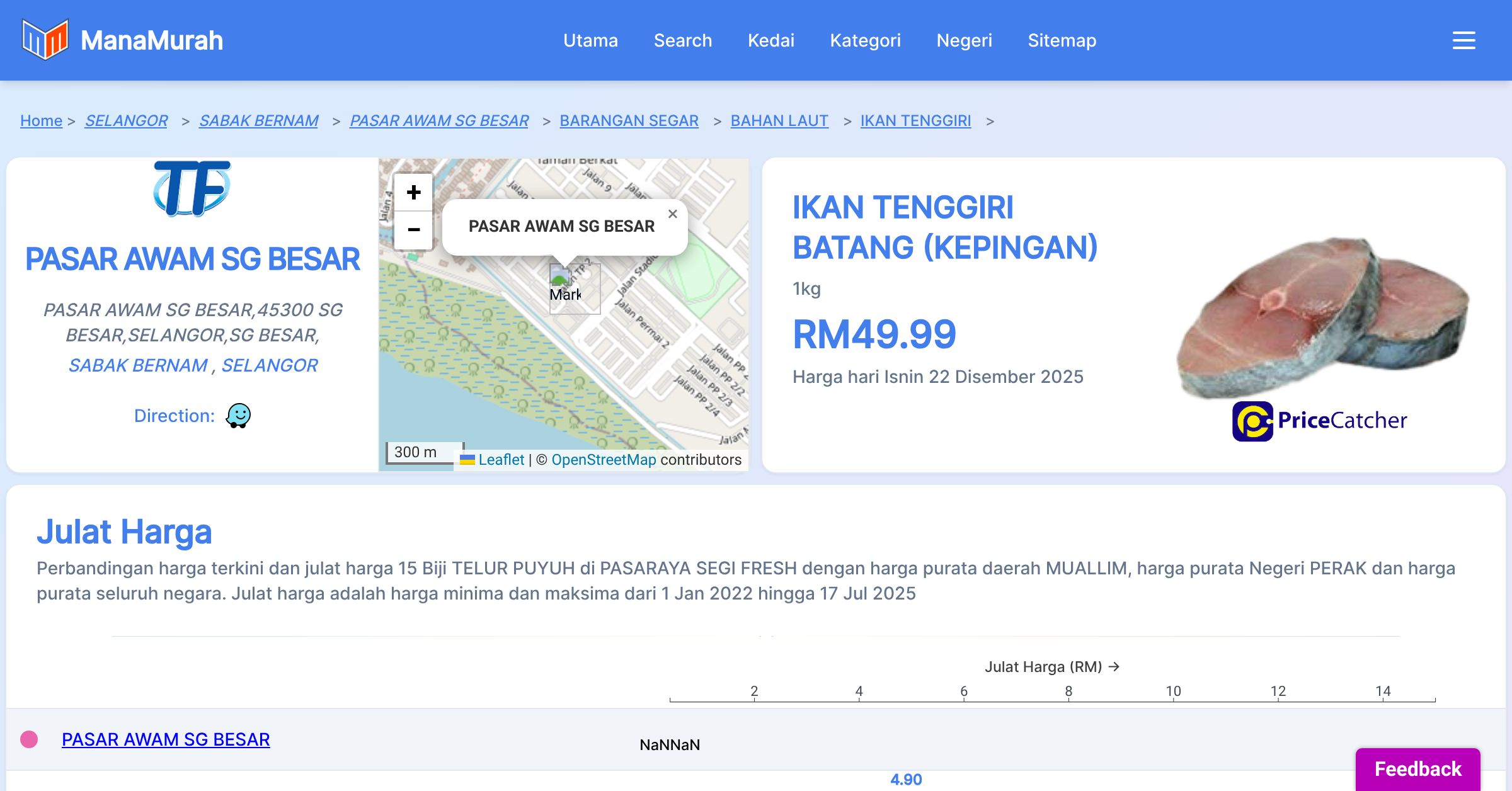 Tiada maklumat harga IKAN TENGGIRI BATANG (KEPINGAN) di Daerah SABAK BERNAM