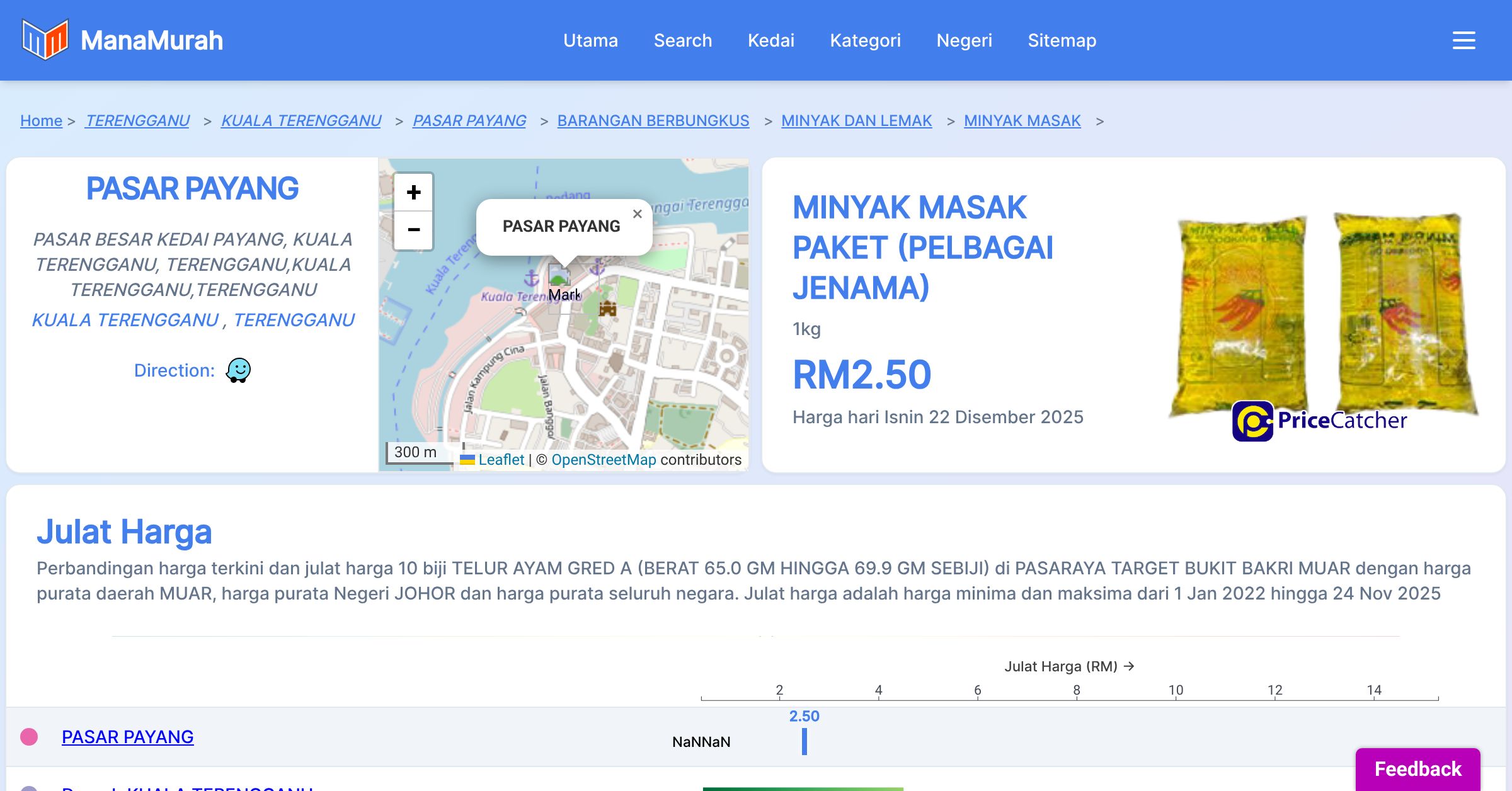 Tiada maklumat harga MINYAK MASAK PAKET (PELBAGAI JENAMA) di Daerah KUALA TERENGGANU