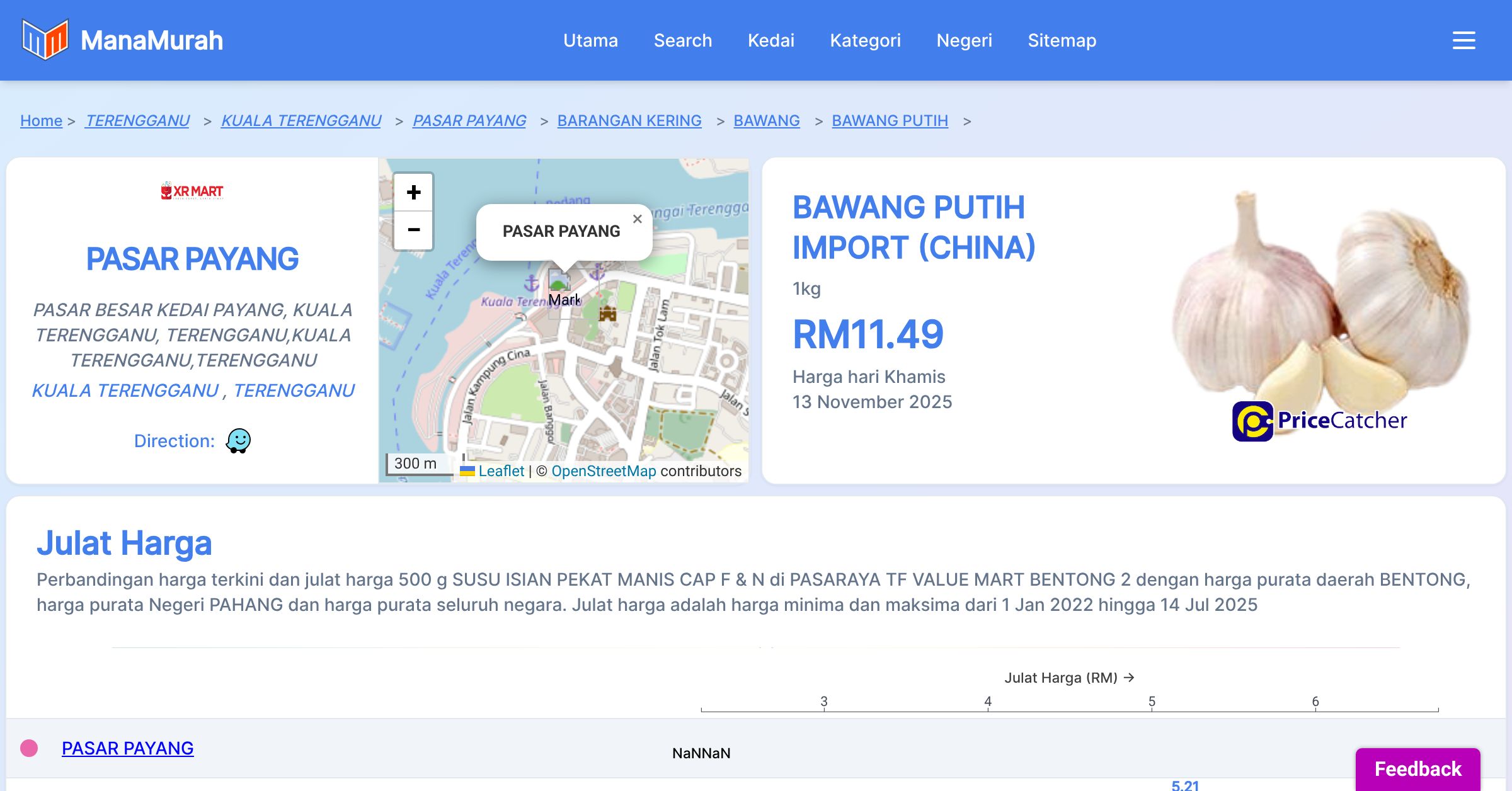 Tiada maklumat harga BAWANG PUTIH IMPORT (CHINA) di Daerah KUALA TERENGGANU pada minggu ke-46 tahun 2025 dari 10 hingga 13 November