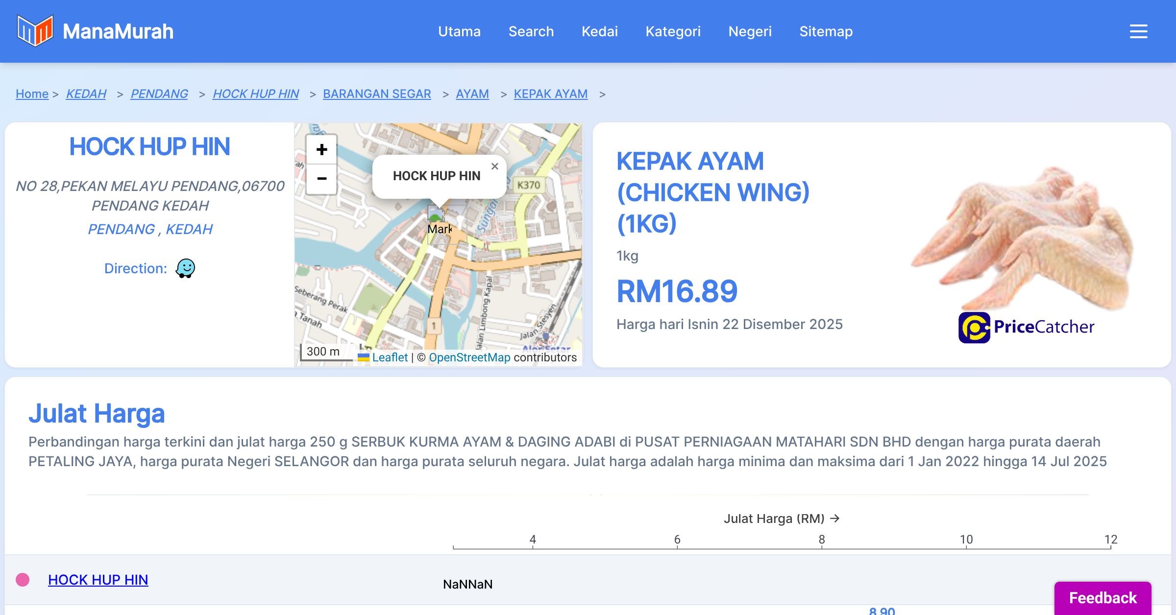 Harga hari Isnin 22 Disember 2025