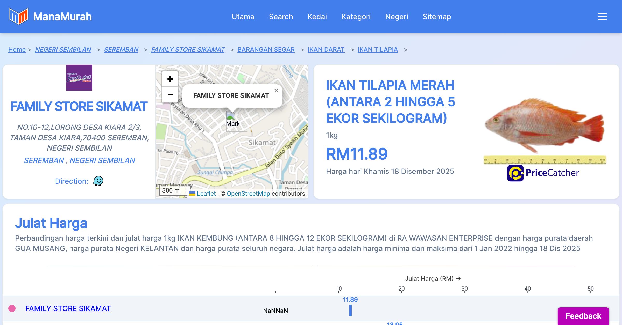 Perbandingan harga terkini dan julat harga 1kg IKAN KEMBUNG (ANTARA 8 HINGGA 12 EKOR SEKILOGRAM) di RA WAWASAN ENTERPRISE dengan harga purata daerah GUA MUSANG, harga purata Negeri KELANTAN dan harga purata seluruh negara. Julat harga adalah harga minima dan maksima dari 1 Jan 2022 hingga 17 Dis 2025