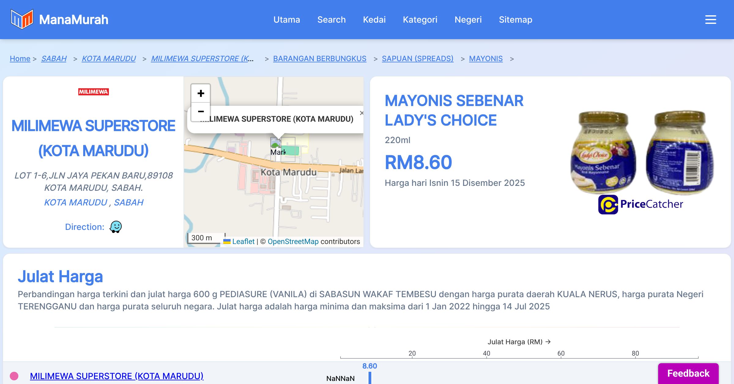 Senarai harga barang di MILIMEWA SUPERSTORE (KOTA MARUDU)