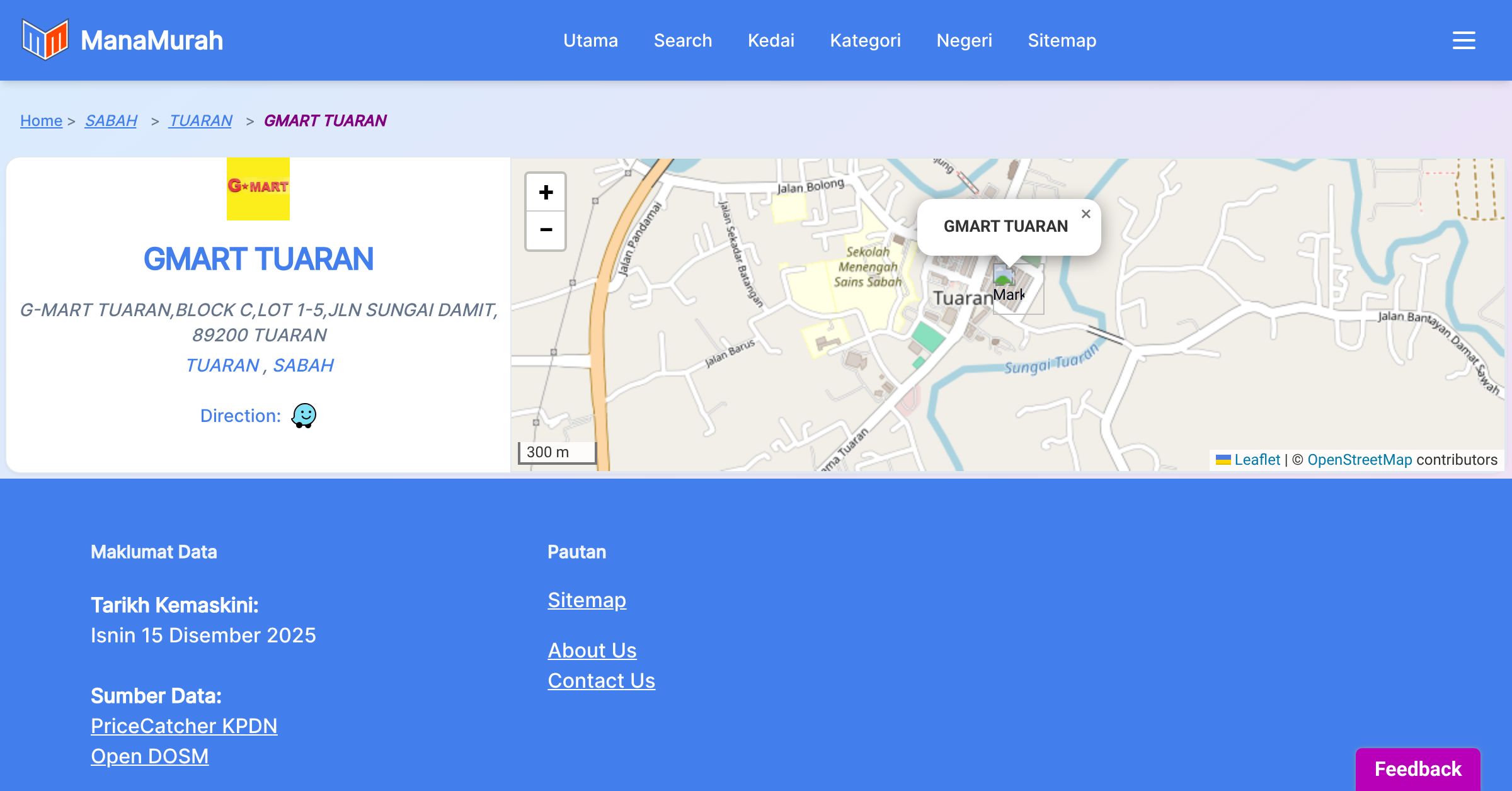 Prices are aggregated from public retail sources (including PriceCatcher KPDN and Open DOSM) and may not reflect real-time in-store prices. ManaMurah.com, DOSM, and KPDN assume no responsibility for any inaccuracies or omissions.