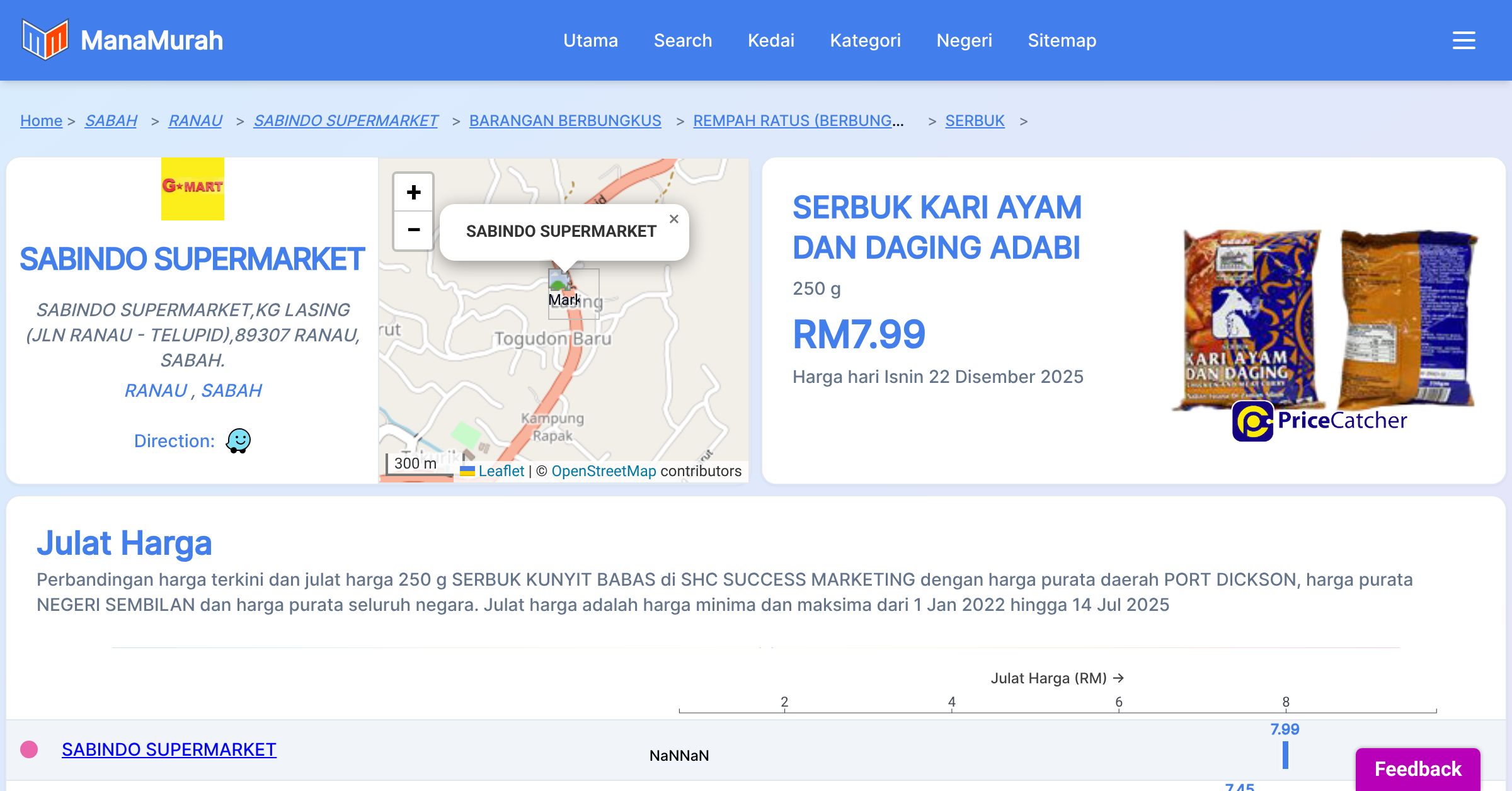 Tiada maklumat harga SERBUK KARI AYAM DAN DAGING ADABI di Daerah RANAU pada minggu ke-52 tahun 2025 dari 22 hingga 23 Disember