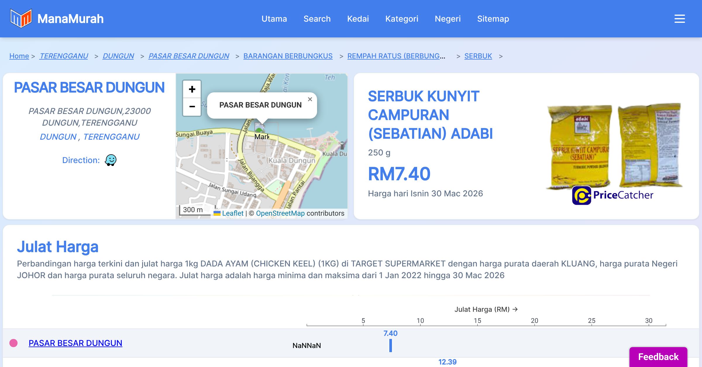Maklumat harga adalah semasa pemantauan dibuat dan untuk tujuan sebagai rujukan sahaja. Pihak ManaMurah.com, DOSM, Portal PriceCatcher dan KPDN tidak bertanggungjawab atas sebarang kesilapan, kekurangan, ketidaktepatan, atau dari sebarang implikasi dari maklumat yang dipaparkan.