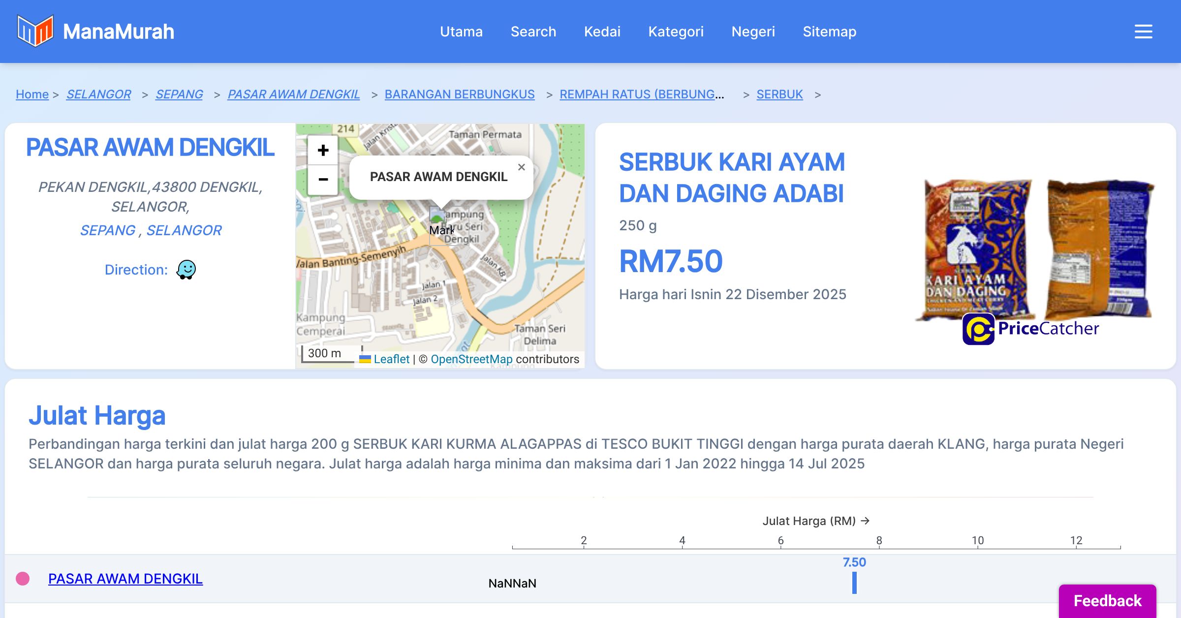 Tiada maklumat harga SERBUK KARI AYAM DAN DAGING ADABI di Daerah SEPANG pada minggu ke-52 tahun 2025 dari 22 hingga 27 Disember