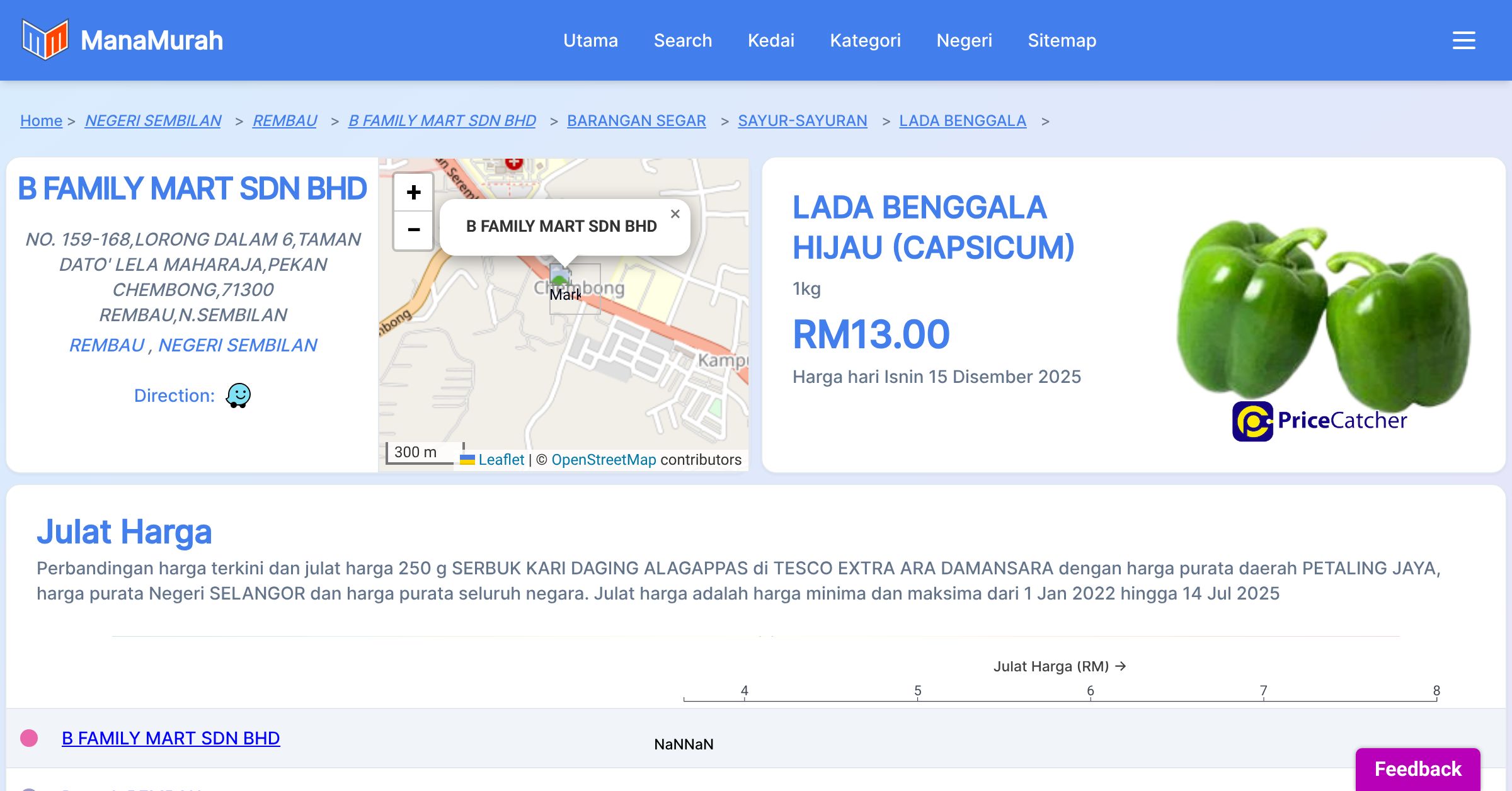 Perbandingan harga terkini dan julat harga 250 g SERBUK KARI DAGING ALAGAPPAS di TESCO EXTRA ARA DAMANSARA dengan harga purata daerah PETALING JAYA, harga purata Negeri SELANGOR dan harga purata seluruh negara. Julat harga adalah harga minima dan maksima dari 1 Jan 2022 hingga 14 Jul 2025