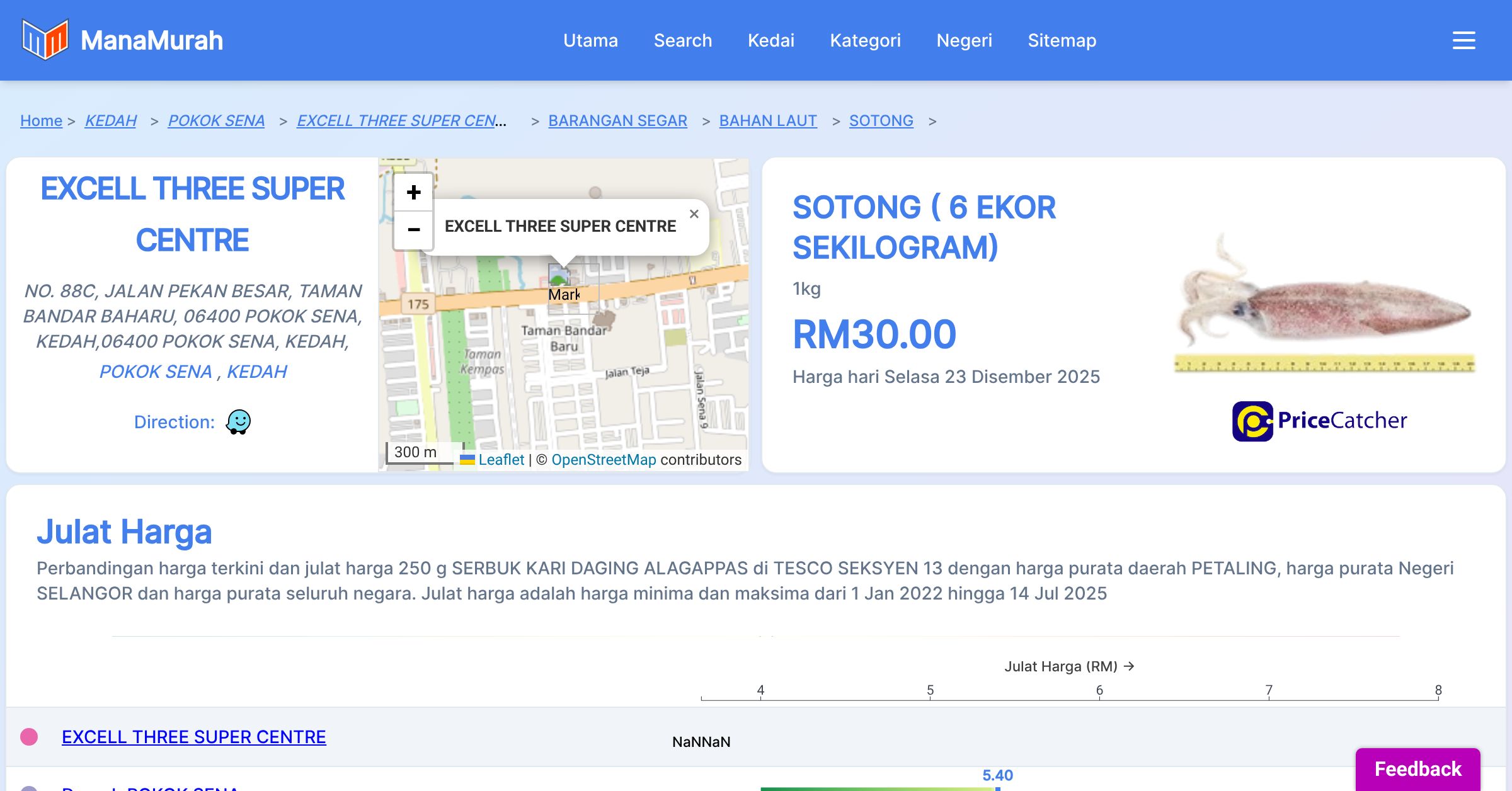 Tiada maklumat harga SOTONG ( 6 EKOR SEKILOGRAM) di Daerah POKOK SENA pada minggu ke-52 tahun 2025 dari 22 hingga 24 Disember