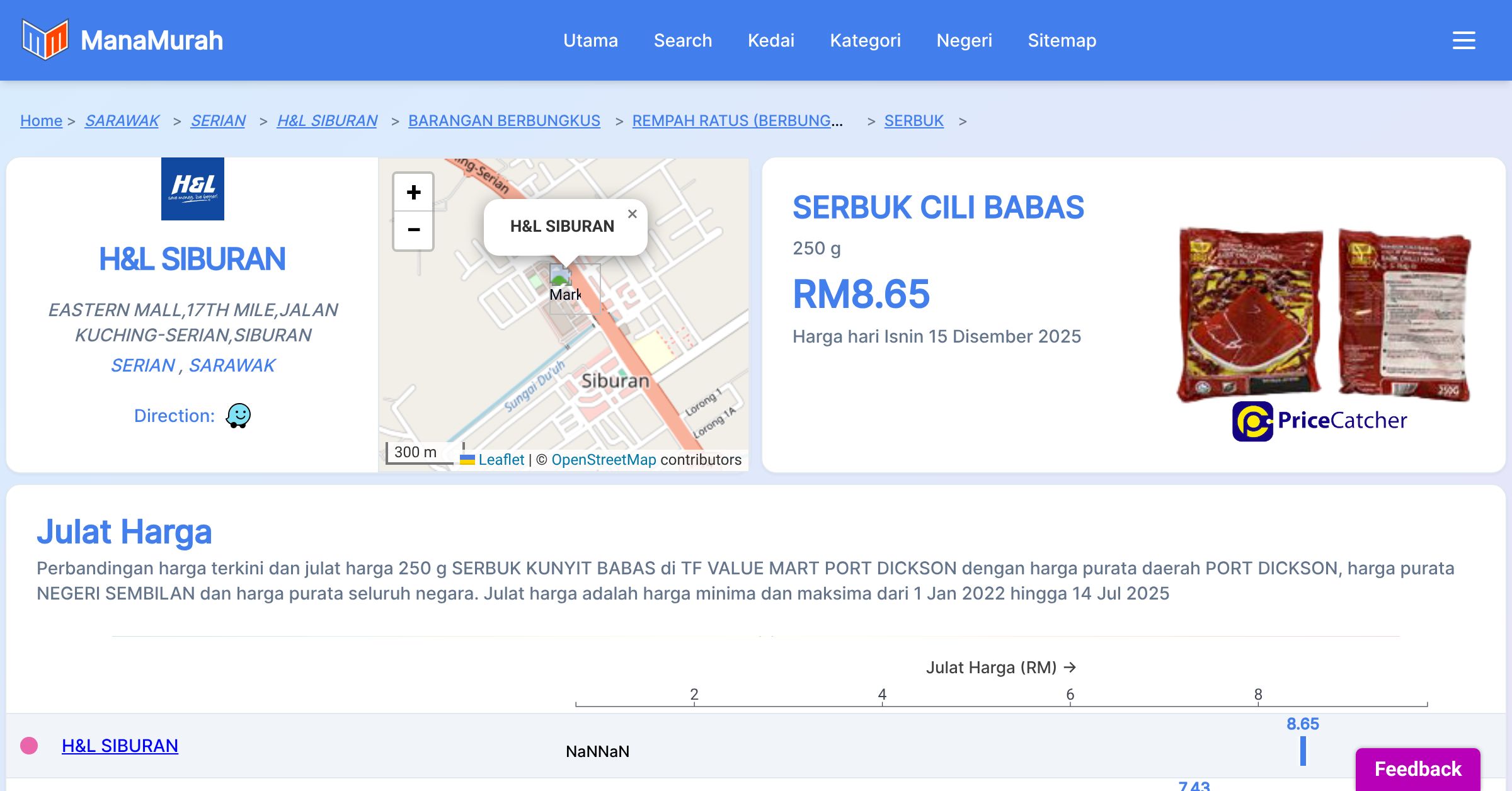 Tiada maklumat harga SERBUK CILI BABAS di Daerah SERIAN
