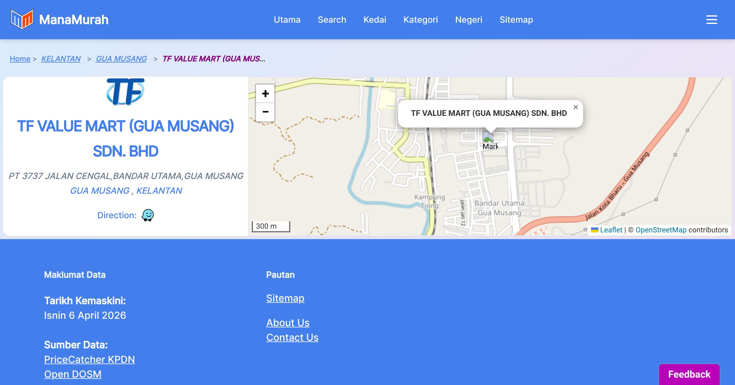 Prices are aggregated from public retail sources (including PriceCatcher KPDN and Open DOSM) and may not reflect real-time in-store prices. ManaMurah.com, DOSM, and KPDN assume no responsibility for any inaccuracies or omissions.