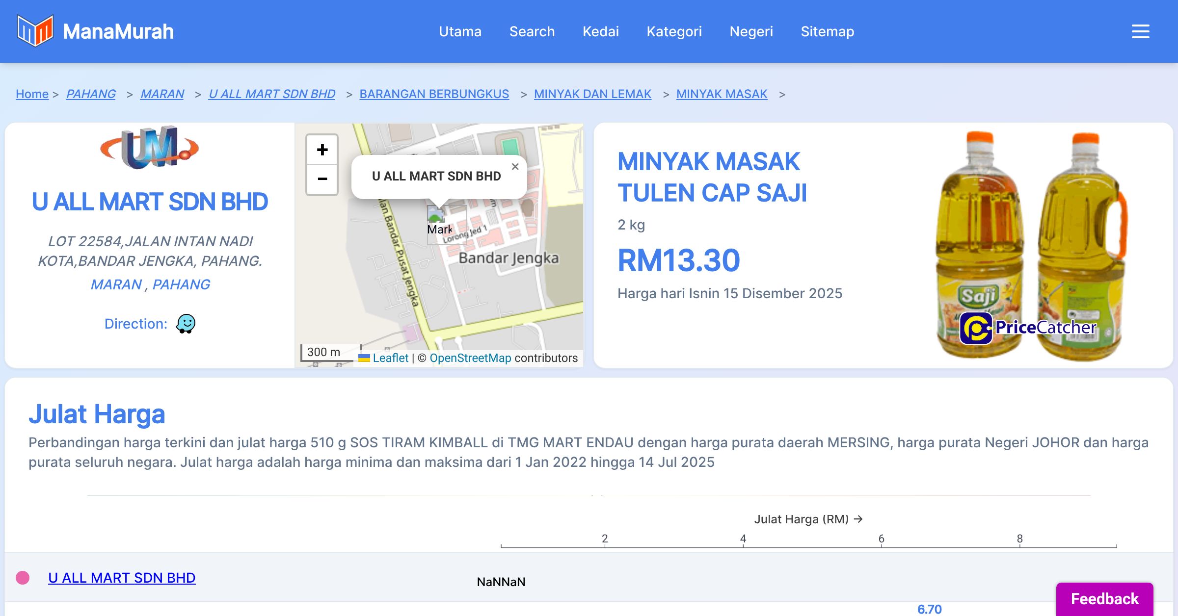 Tiada maklumat harga MINYAK MASAK TULEN CAP SAJI di Daerah MARAN