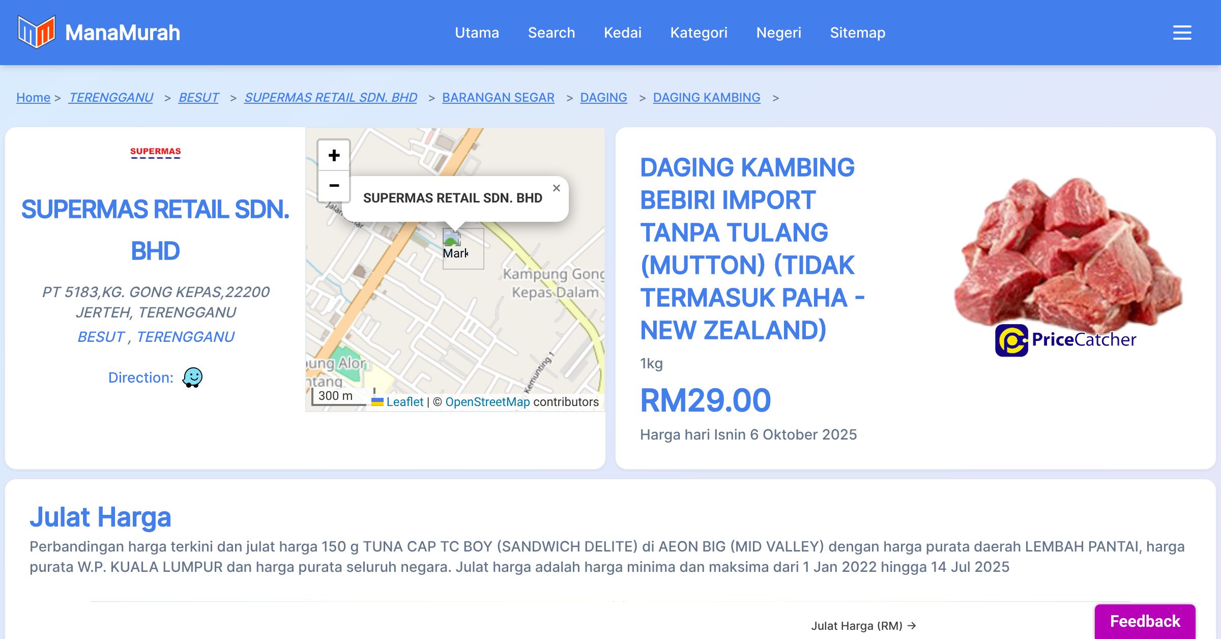 Senarai harga barang di SUPERMAS RETAIL SDN. BHD
