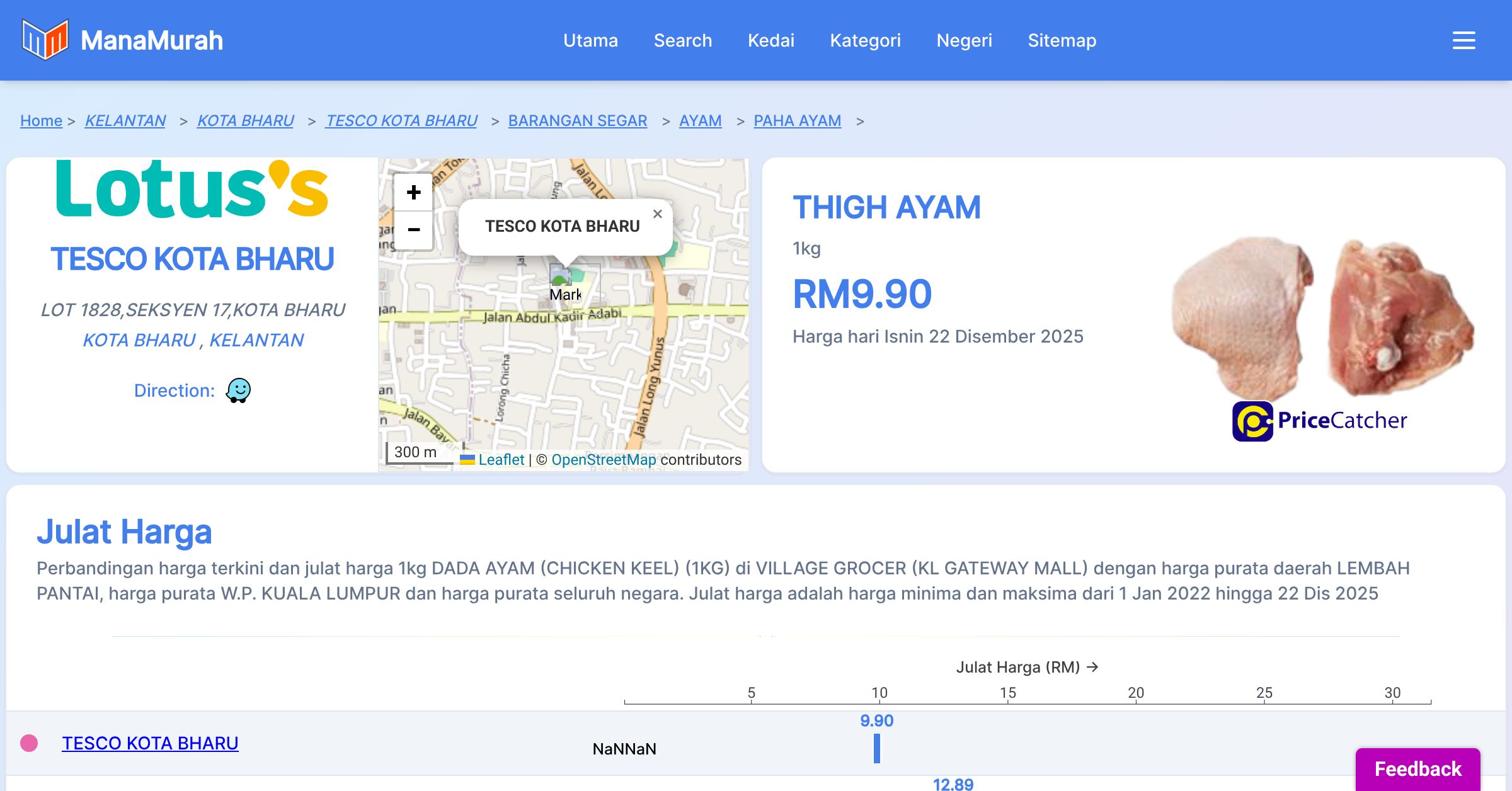 Tiada maklumat harga THIGH AYAM di Daerah KOTA BHARU