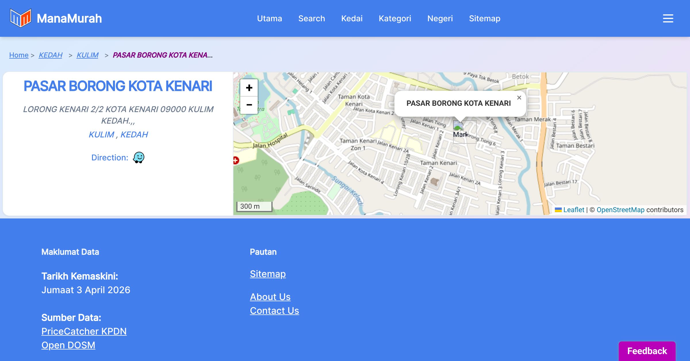 Maklumat harga adalah semasa pemantauan dibuat dan untuk tujuan sebagai rujukan sahaja. Pihak ManaMurah.com, DOSM, Portal PriceCatcher dan KPDN tidak bertanggungjawab atas sebarang kesilapan, kekurangan, ketidaktepatan, atau dari sebarang implikasi dari maklumat yang dipaparkan.