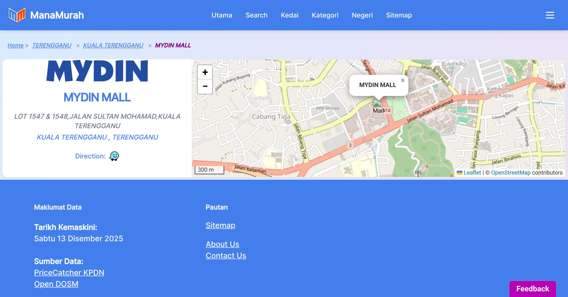 Maklumat harga adalah semasa pemantauan dibuat dan untuk tujuan sebagai rujukan sahaja. Pihak ManaMurah.com, DOSM, Portal PriceCatcher dan KPDN tidak bertanggungjawab atas sebarang kesilapan, kekurangan, ketidaktepatan, atau dari sebarang implikasi dari maklumat yang dipaparkan.
