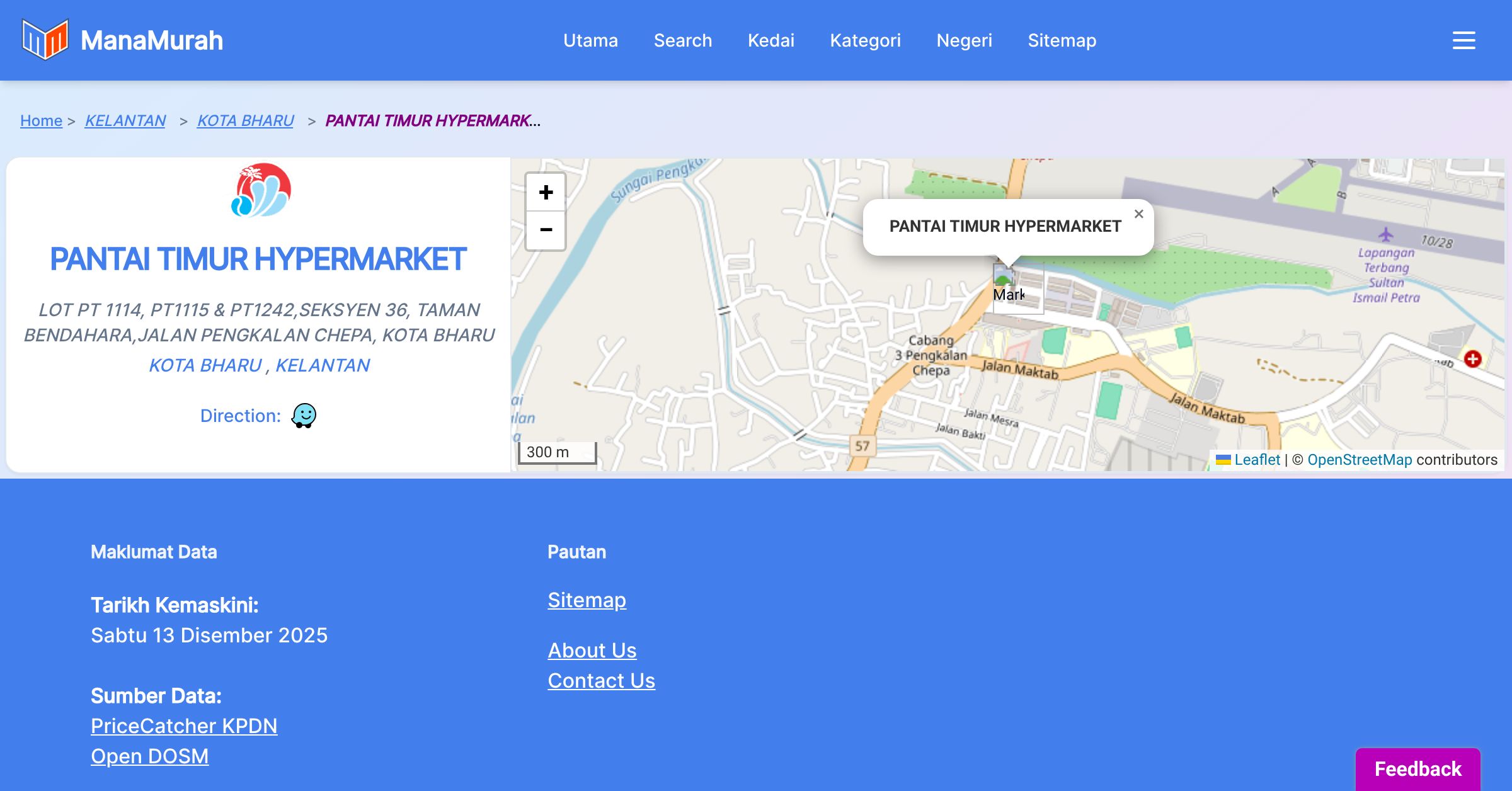 Prices are aggregated from public retail sources (including PriceCatcher KPDN and Open DOSM) and may not reflect real-time in-store prices. ManaMurah.com, DOSM, and KPDN assume no responsibility for any inaccuracies or omissions.
