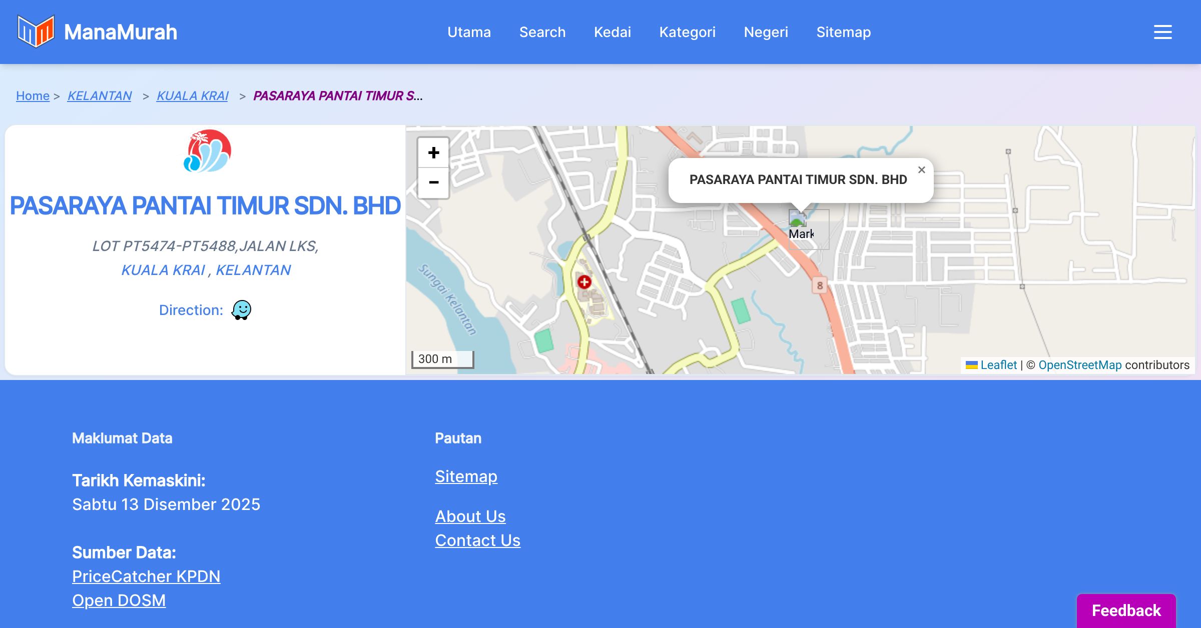 Prices are aggregated from public retail sources (including PriceCatcher KPDN and Open DOSM) and may not reflect real-time in-store prices. ManaMurah.com, DOSM, and KPDN assume no responsibility for any inaccuracies or omissions.