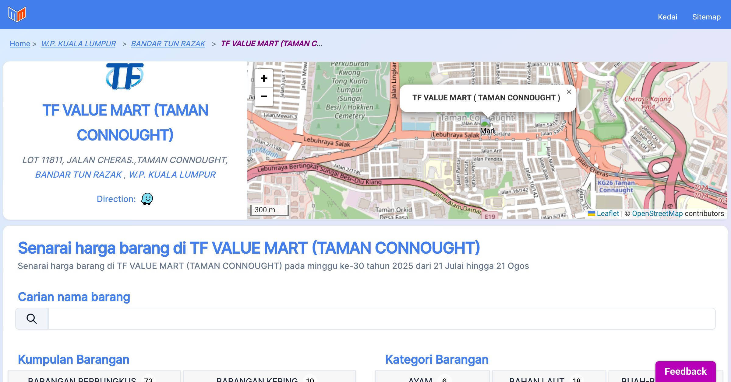 Home > W.P. KUALA LUMPUR> BANDAR TUN RAZAK> TF VALUE MART (TAMAN CONNOUGHT)